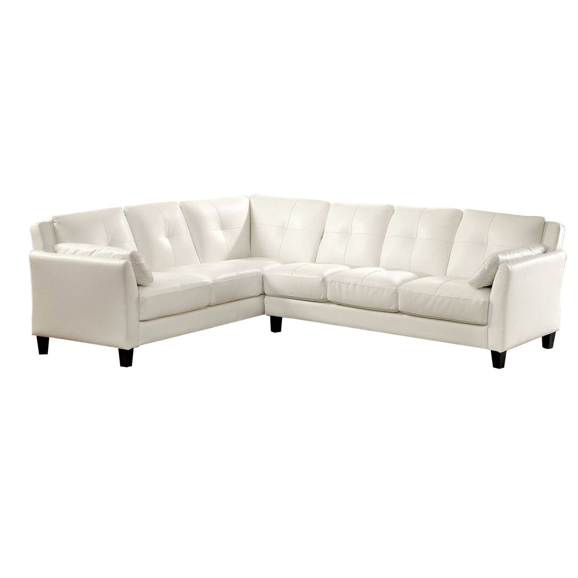 Sectional Sofa Withand Centre Tufted Stitching, White White Wood Fabric 6 Seat