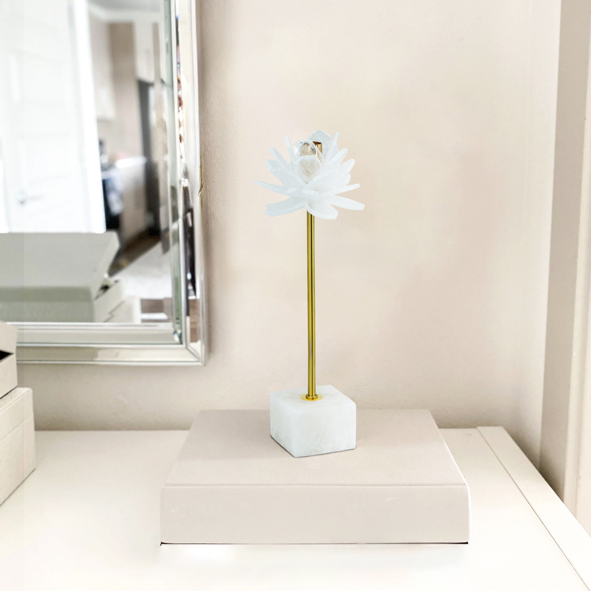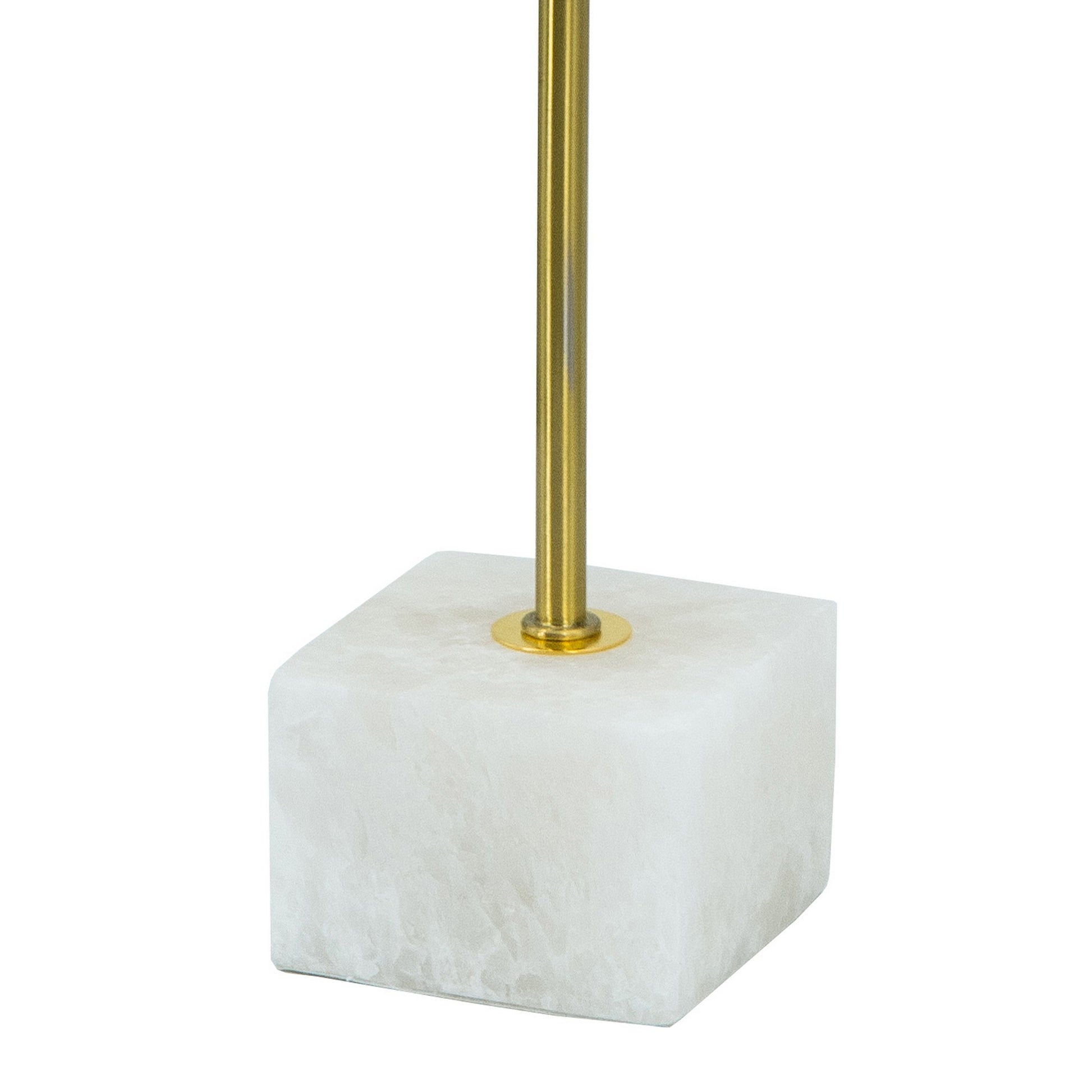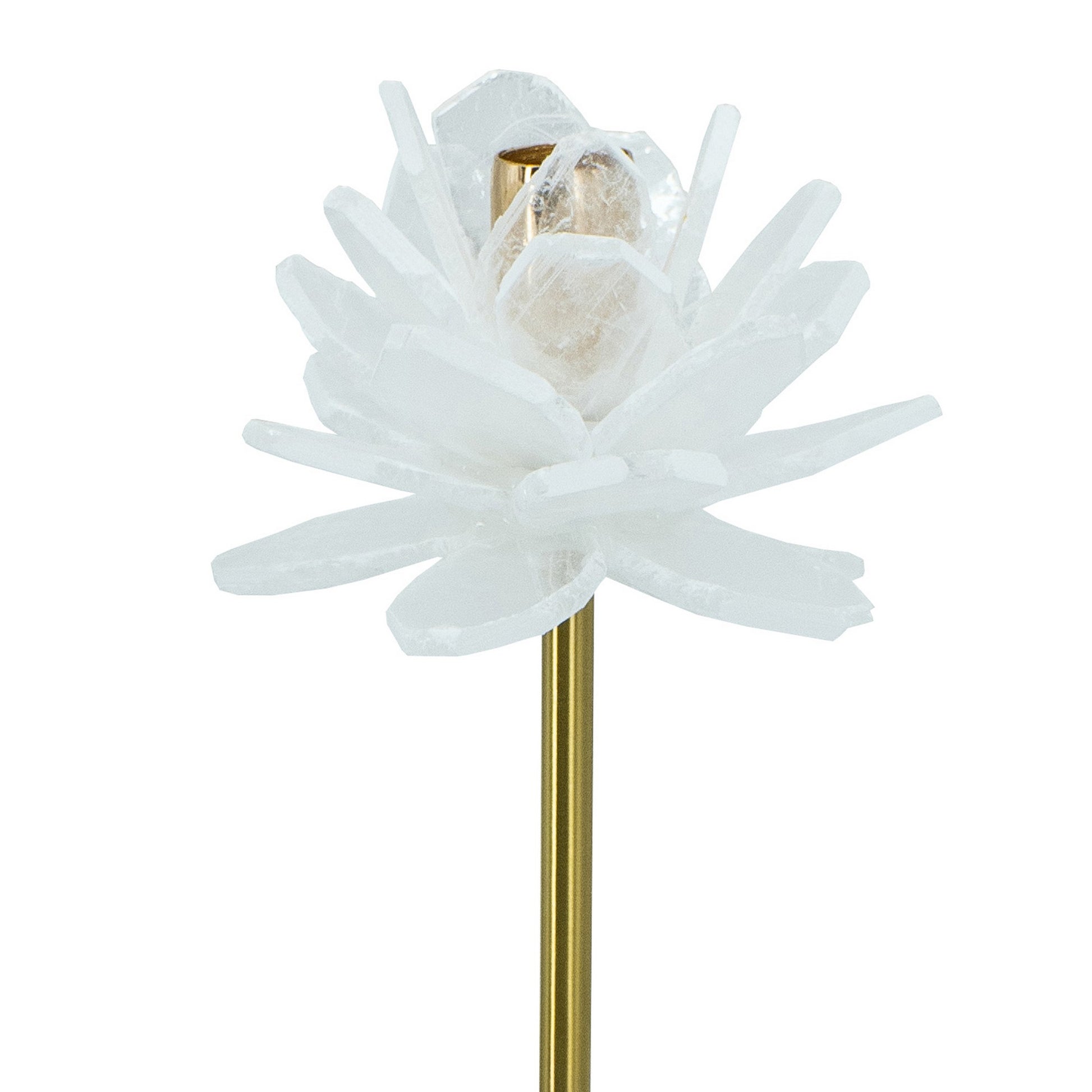 Sel 14 Inch Candle Holder With Modern Selenite Stone Accent, Gold And White White Gold Iron