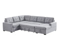 Selene 115.5" Light Gray Linen Fabric Sleeper Sectional Sofa With Storage Chaise Light Gray Linen