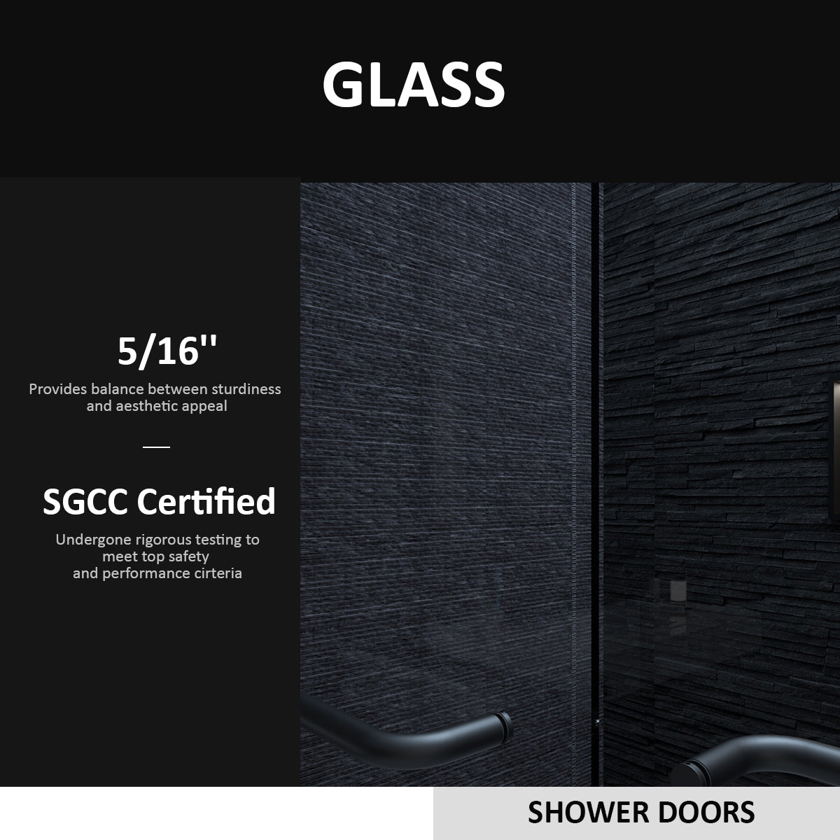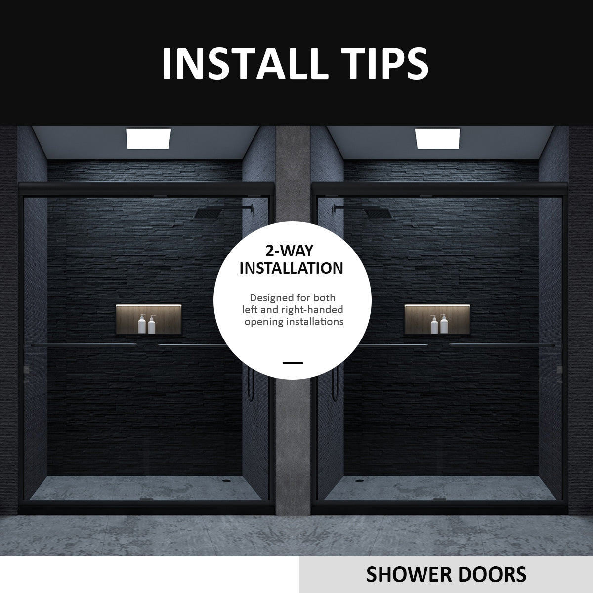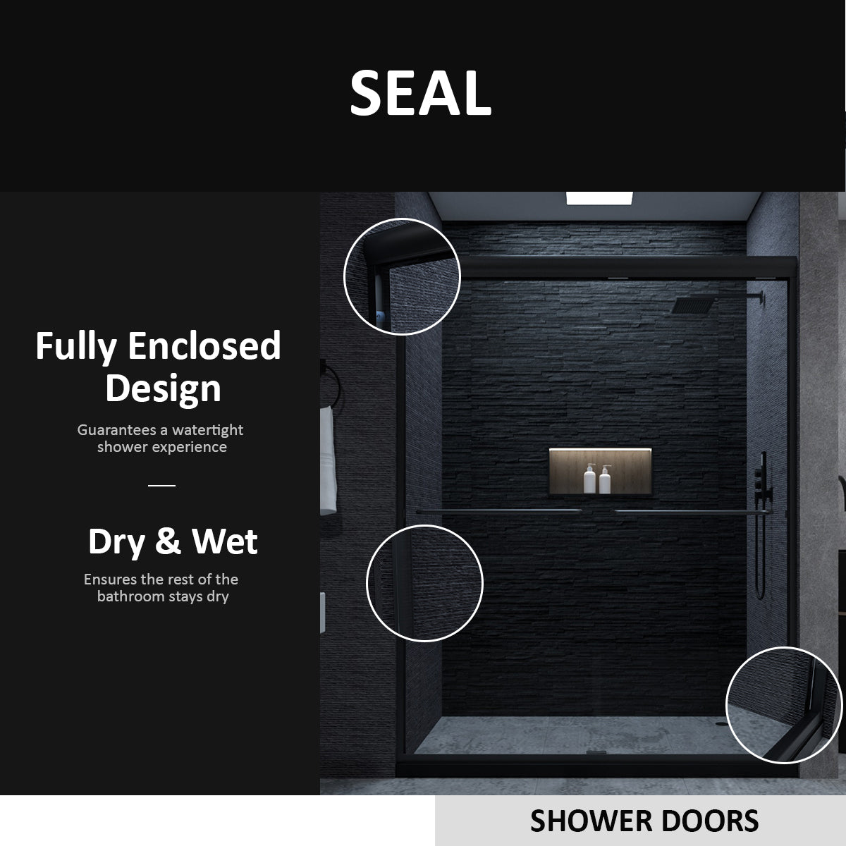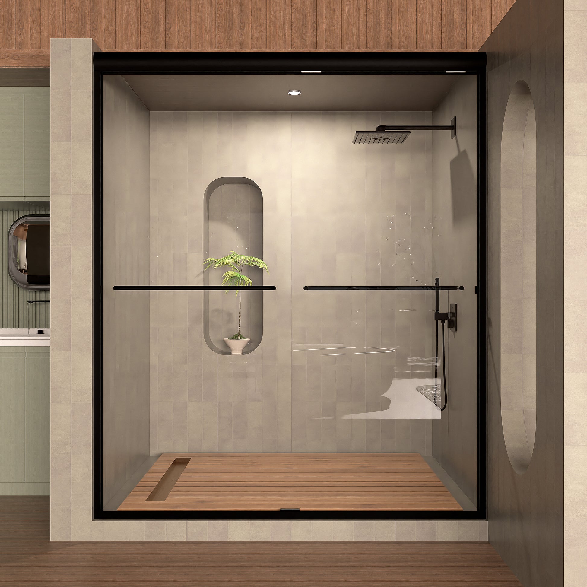 Semi Frameless Sliding Shower Door 56 60 In. W X 72 In. H, Bathroom Sliding Door With 5 16" Clear Tempered Glass, Matte Black Finish, Designed For Smooth Door Closing Matte Black Stainless Steel