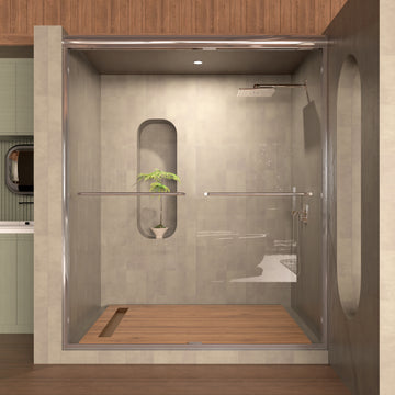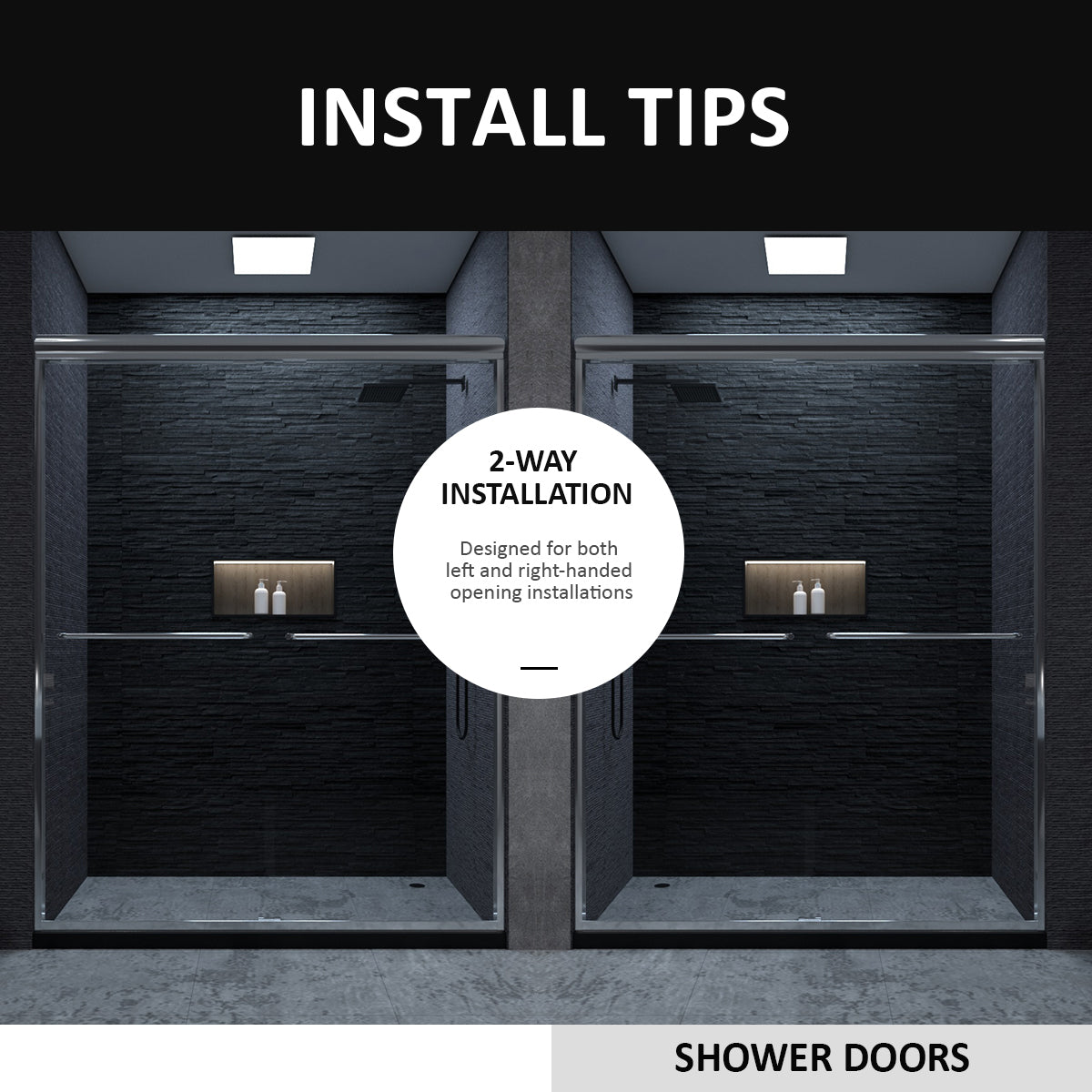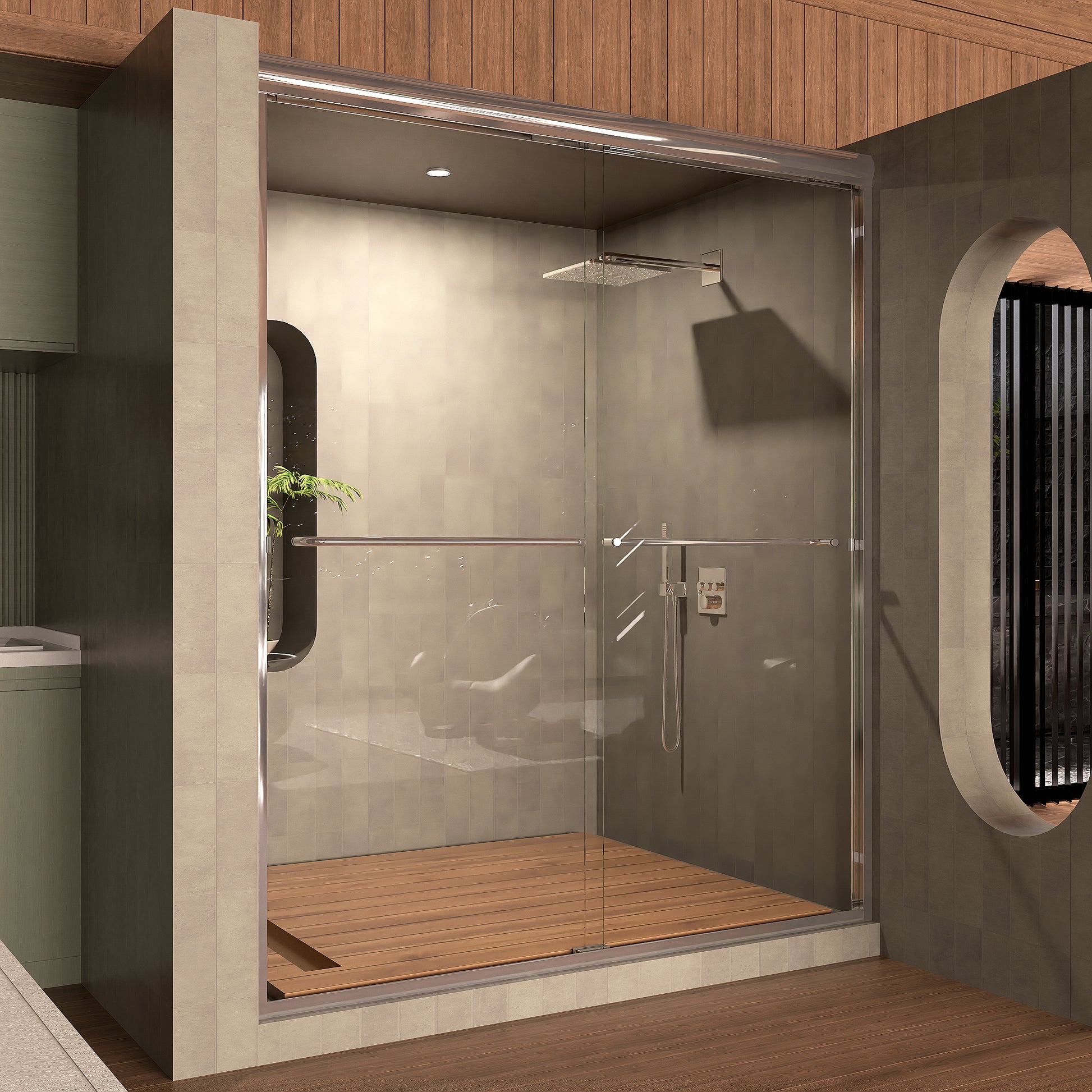 Semi Frameless Sliding Shower Door 56 60 In. W X 72 In. H, Bathroom Sliding Door With 5 16" Clear Tempered Glass,Chrome Finish, Designed For Smooth Door Closing Chrome Stainless Steel