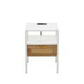 Set Of 2, 15.75" Rattan End Table With Power Outlet & Usb Portsmodern Nightstand With Drawer And Metal Legs, Side Table For Living Room, Bedroom,White White Mdf Metal