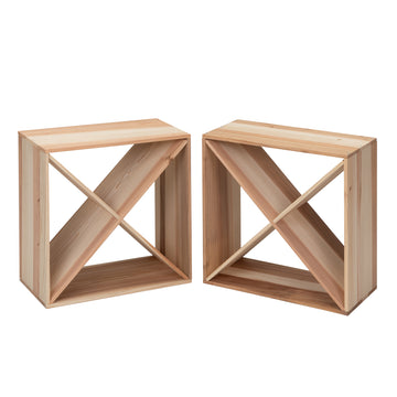 Set Of 2 24 Bottle Wine Rack, Wine Storage Cube For Bar Kitchen Cellar, Wood Crate In Natural Natural Wood
