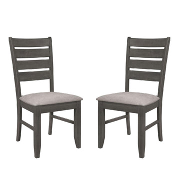 Set Of 2 Dining Chairs With Fabric Upholstered Seat, Dark Grey Solid Dark Grey Dining Room Rectangular Dining Chairs Ladder Back Set Of 2 Fabric,Mdf