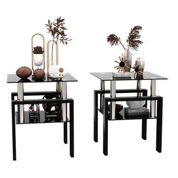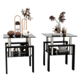Set Of 2, Modern Tempered Glass Tea Table Coffee Table End Table, Square Table For Living Room, Black Black Tempered Glass