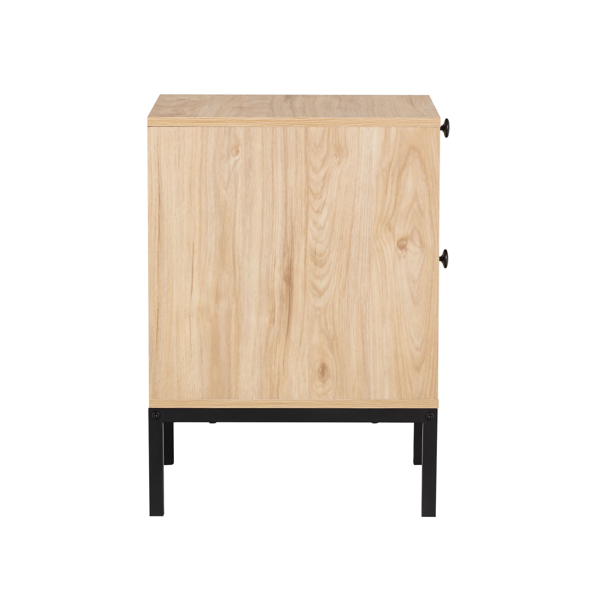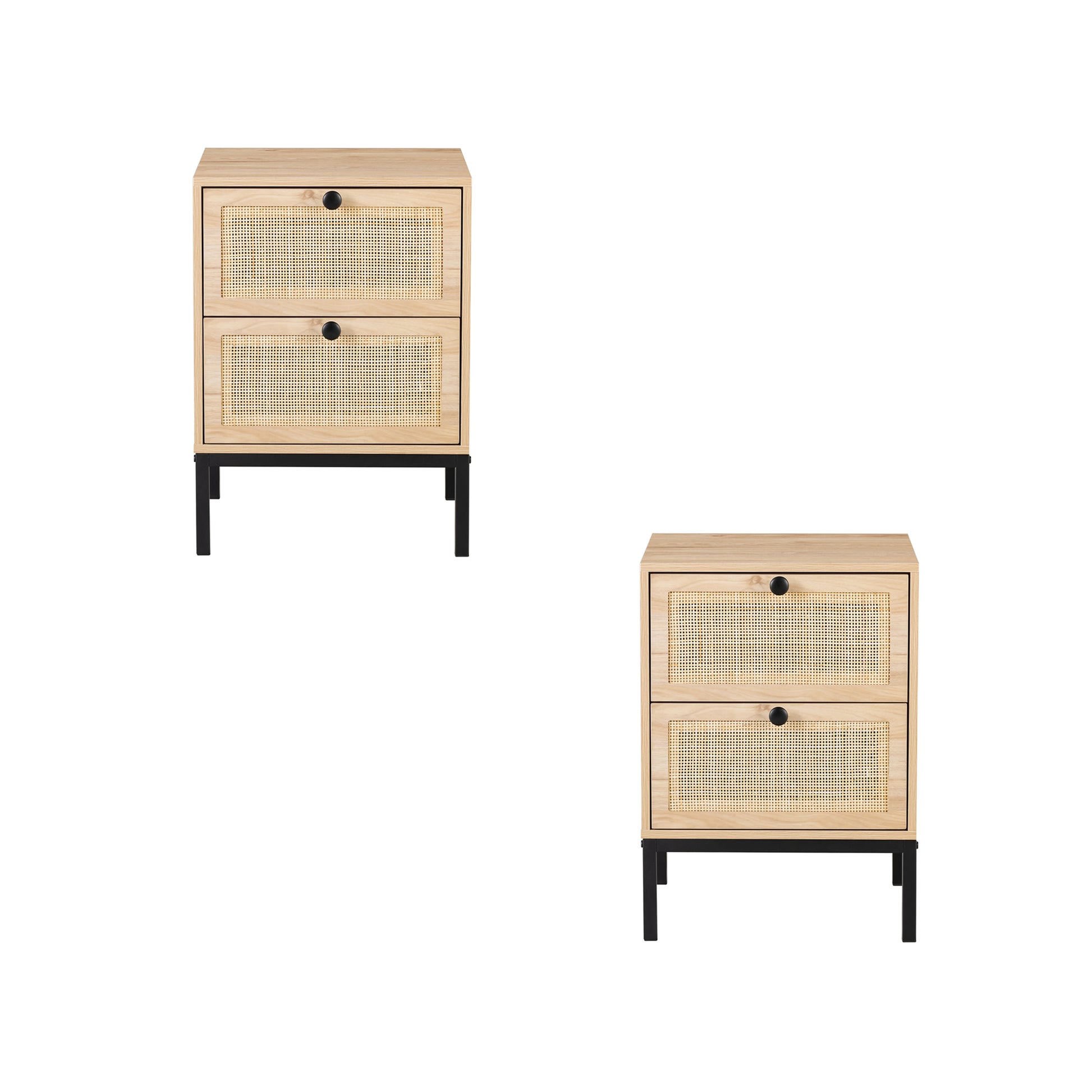 Set Of 2 Rectangle Rattan Bedside Table Nightstand With Drawer 2 Beige Mdf