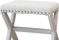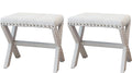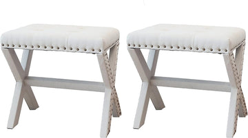 Introducing our modern chic vanity stool set of 2 the perfect addition to your bedroom or dressing room. Made with high-quality materials, this stool is both stylish and functional. The X-Base legs provide a sturdy foundation while adding a modern touch to the design.STYLISH Beauty ROUTINE: Our vanity chair elevates your daily beauty routine with its tufted soft linen seat, X-base & nail-head trim; It's the ultimate makeup stool for any fashion-forward individual.COMPACT & LIGHTWEIGHT: At 5 lbs, our accent chair is perfect as a standalone piece or a vanity bench; Compact, versatile, and easy to move around, you can perfectly fit this vanity seat to any room.MAXIMUM COMFORT: This comfy chair is upholstered in soft and luxurious fabric that feels great against the skin; It's an impeccable vanity stool chair for all your daily grooming needs.RELIABLE : This sturdy decorative chair provides style and comfort during long beauty sessions; With a solid wood X-shaped base & generously padded seat, it's the perfect sitting stool for any room.IDEAL MEASUREMENTS: Our vanity bench seat measures 19" L x 17" D x 17" H & has a capacity of 300 lbs; It is suitable as a cute vanity chair, entryway stool, or comfy accent chair for your bedroom. Listing Includes:- 2pc Vanity Stools Only.