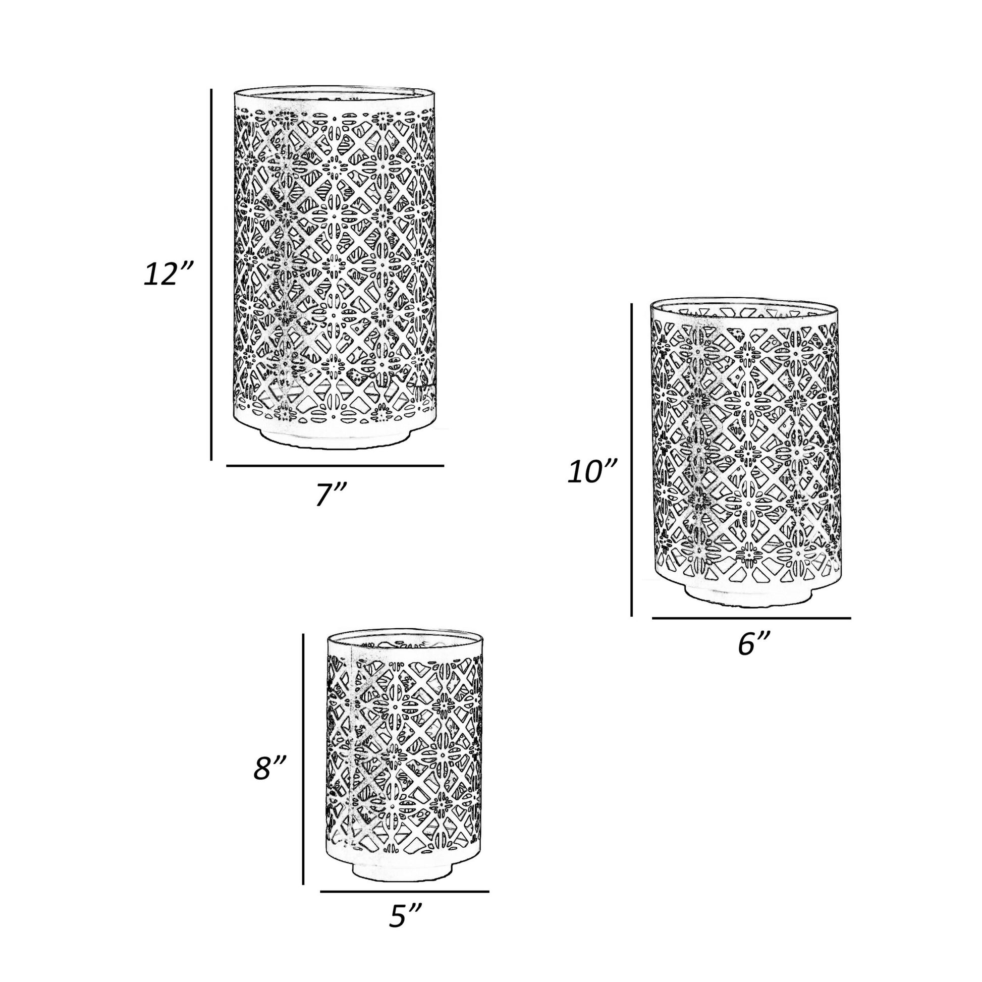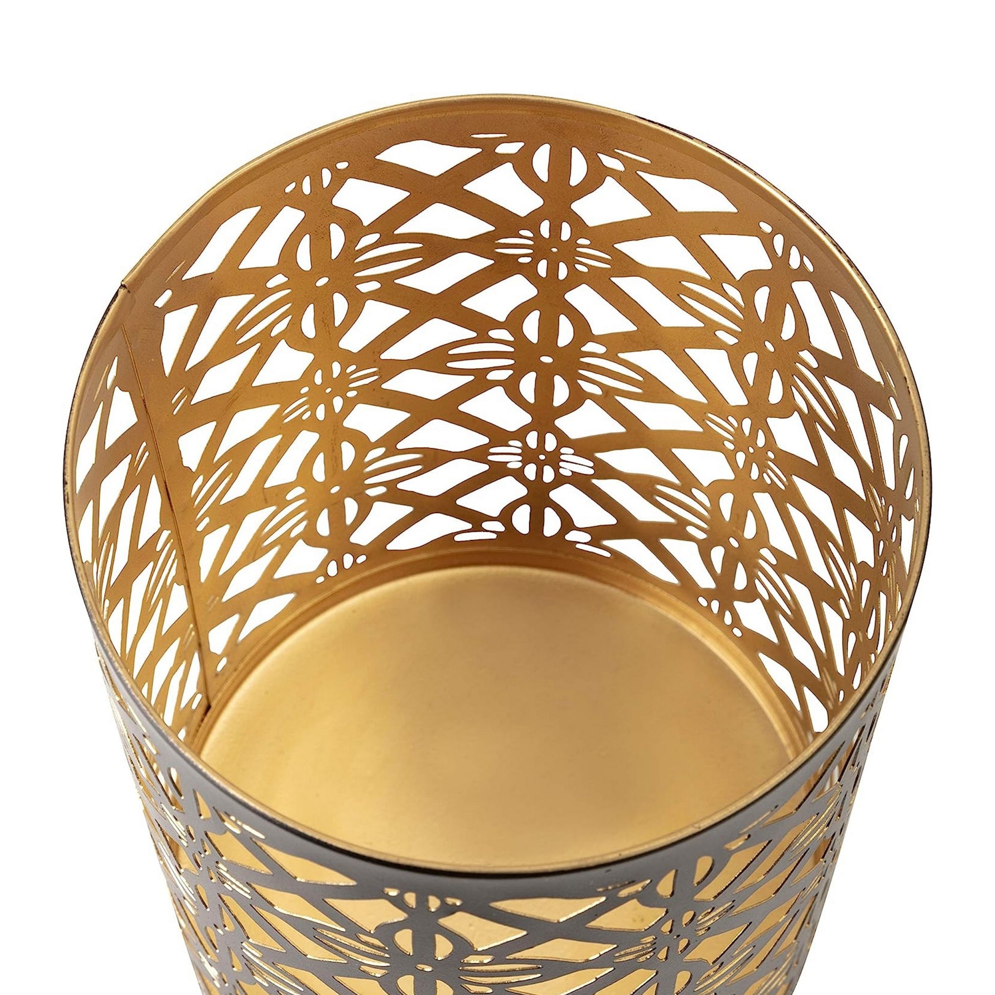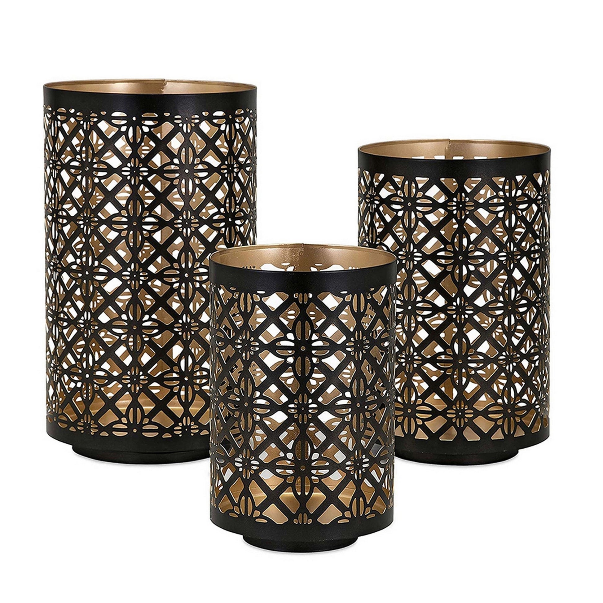Set Of 3 Rounded Iron Candle Holder Lanterns, Matte Black Gold Latticework Black Gold Iron