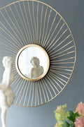 Set Of 3 Wall Mirror Abstract Designed Wall Mirrors With Gold Frame For Home & Office,Top Of Sideboard L:26X5X25.5" M:22X3.5X22" S:18X2.5X18" Gold Iron