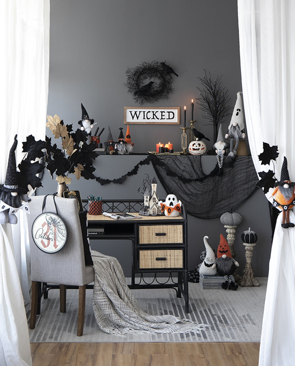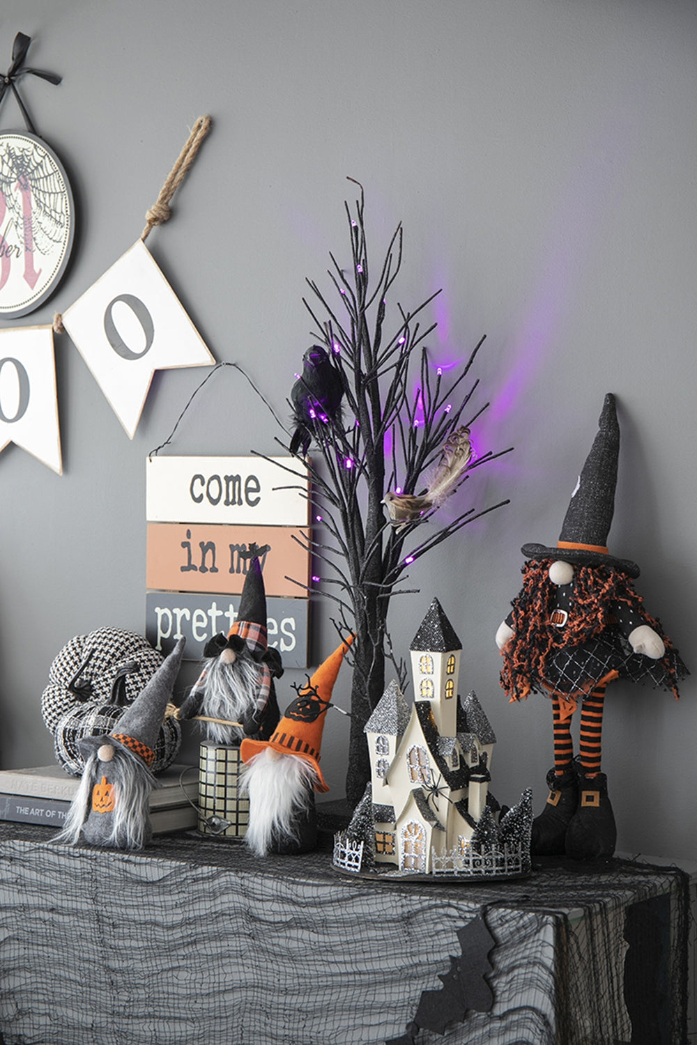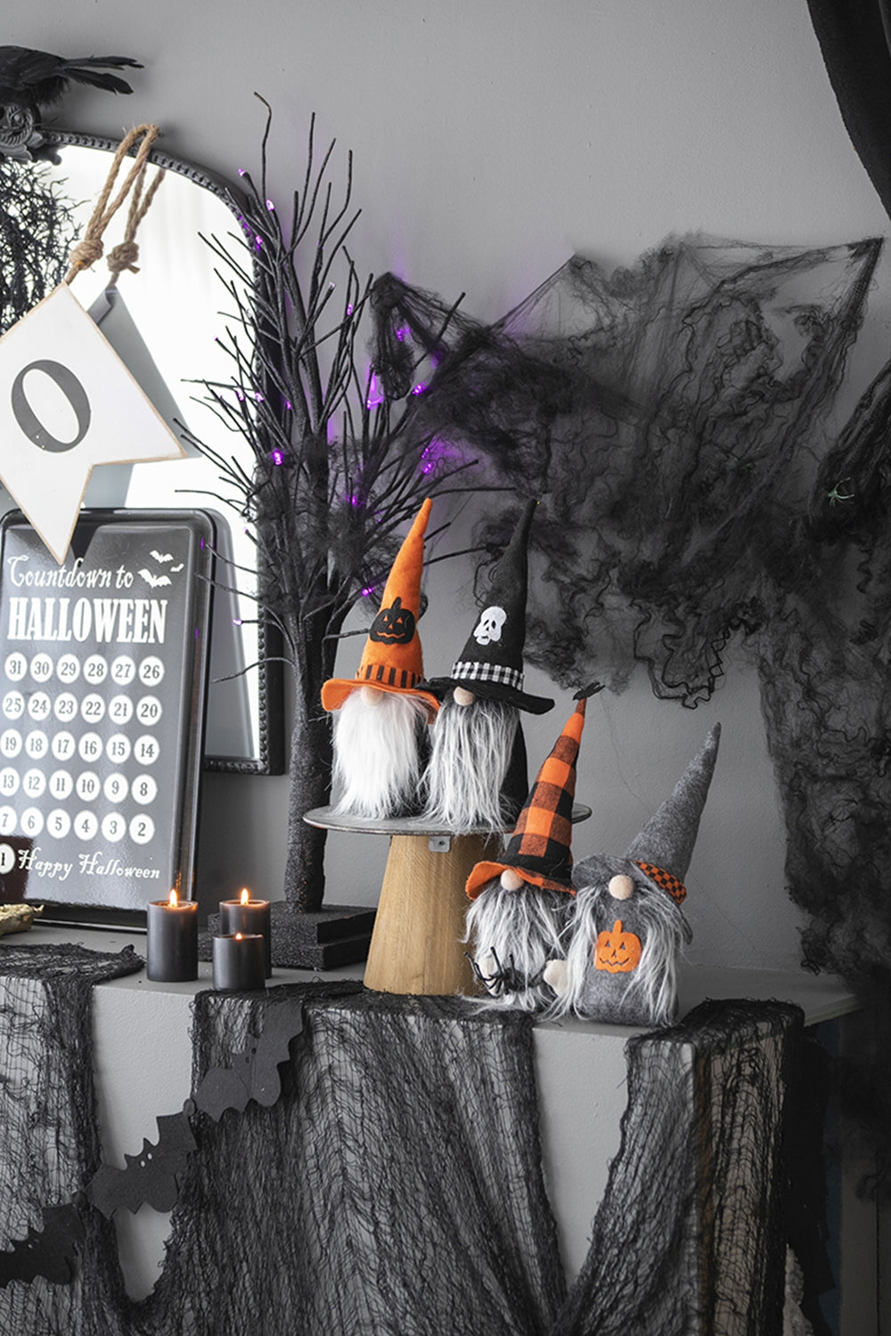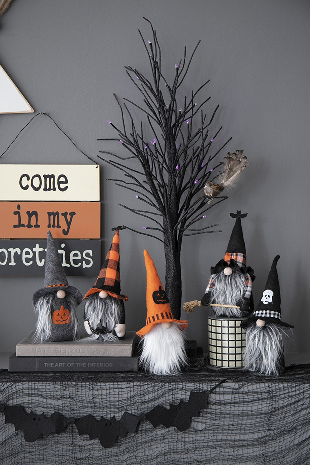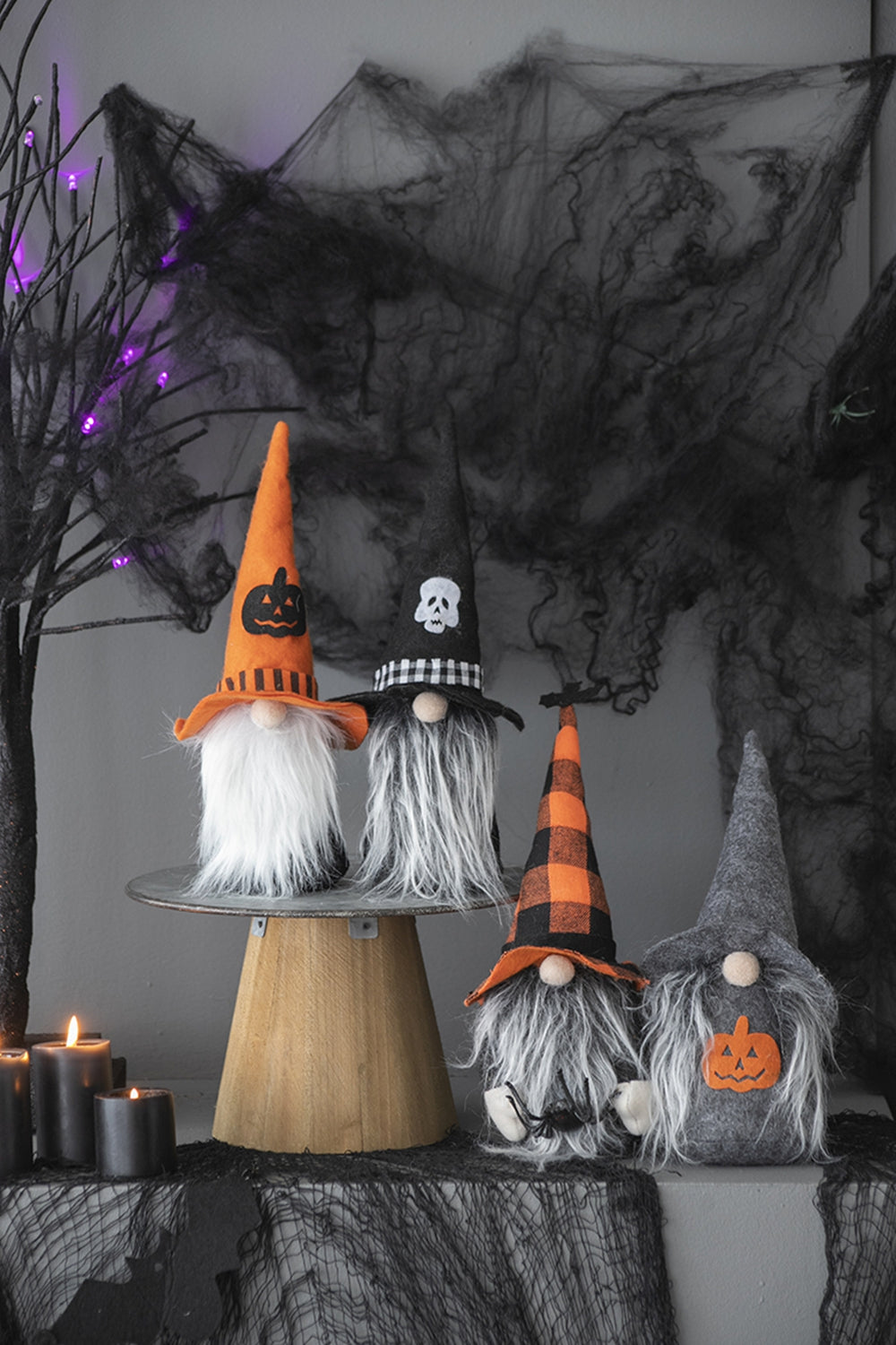 Set Of 4, 12"H Halloween Gnome Decor, Black Orange Gray Black,Gray,Orange Polyester