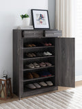 Shoe Cabinet, Two Door Storage Cabinet With Two Drawers, Fits 15 Pair Of Shoes Distressed Grey Grey Particle Board