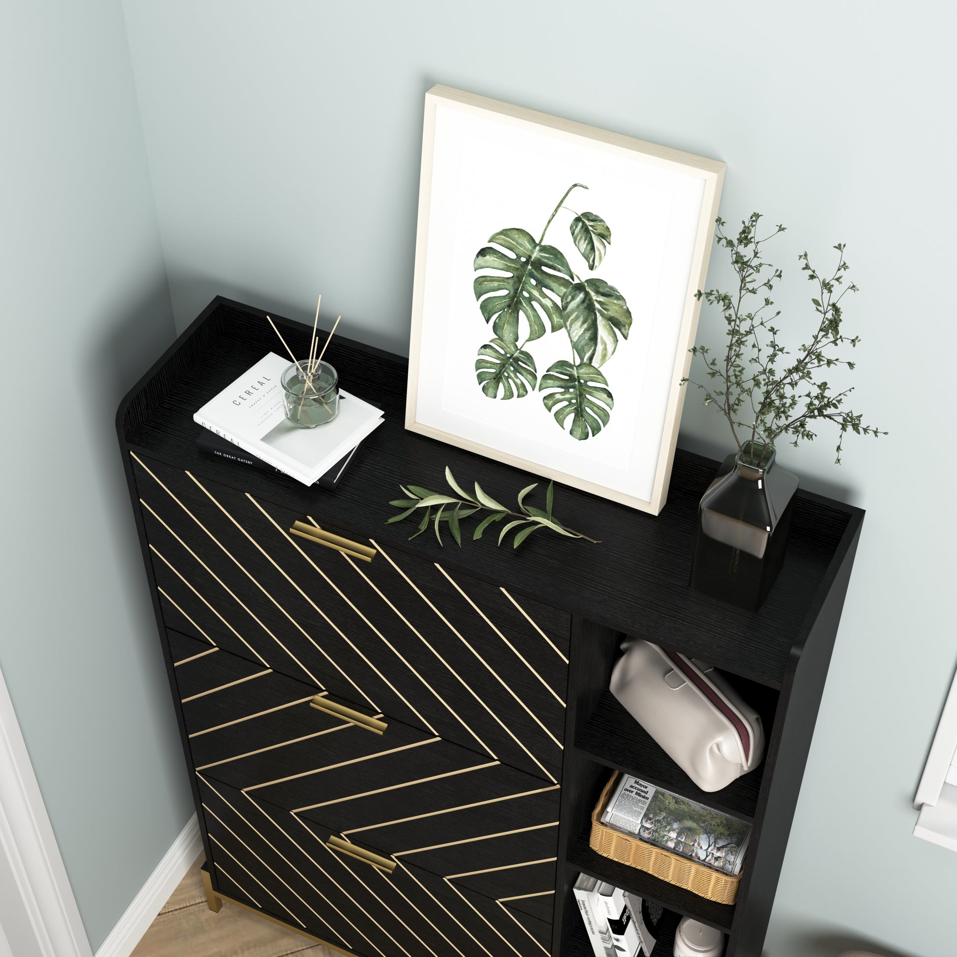 Shoe Cabinet With 3 Flip Drawers & Open Shelves, Modern Entryway Shoe Storage Cabinet Slim, Narrow Hidden Shoe Rack For Heels, Boots, Slippers, Wood Freestanding Shoe Organizer For Entrance Black Bedroom Farmhouse Foam Mdf