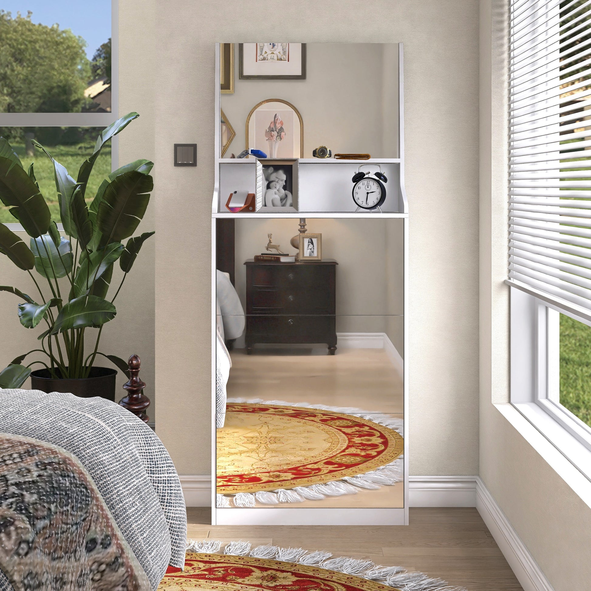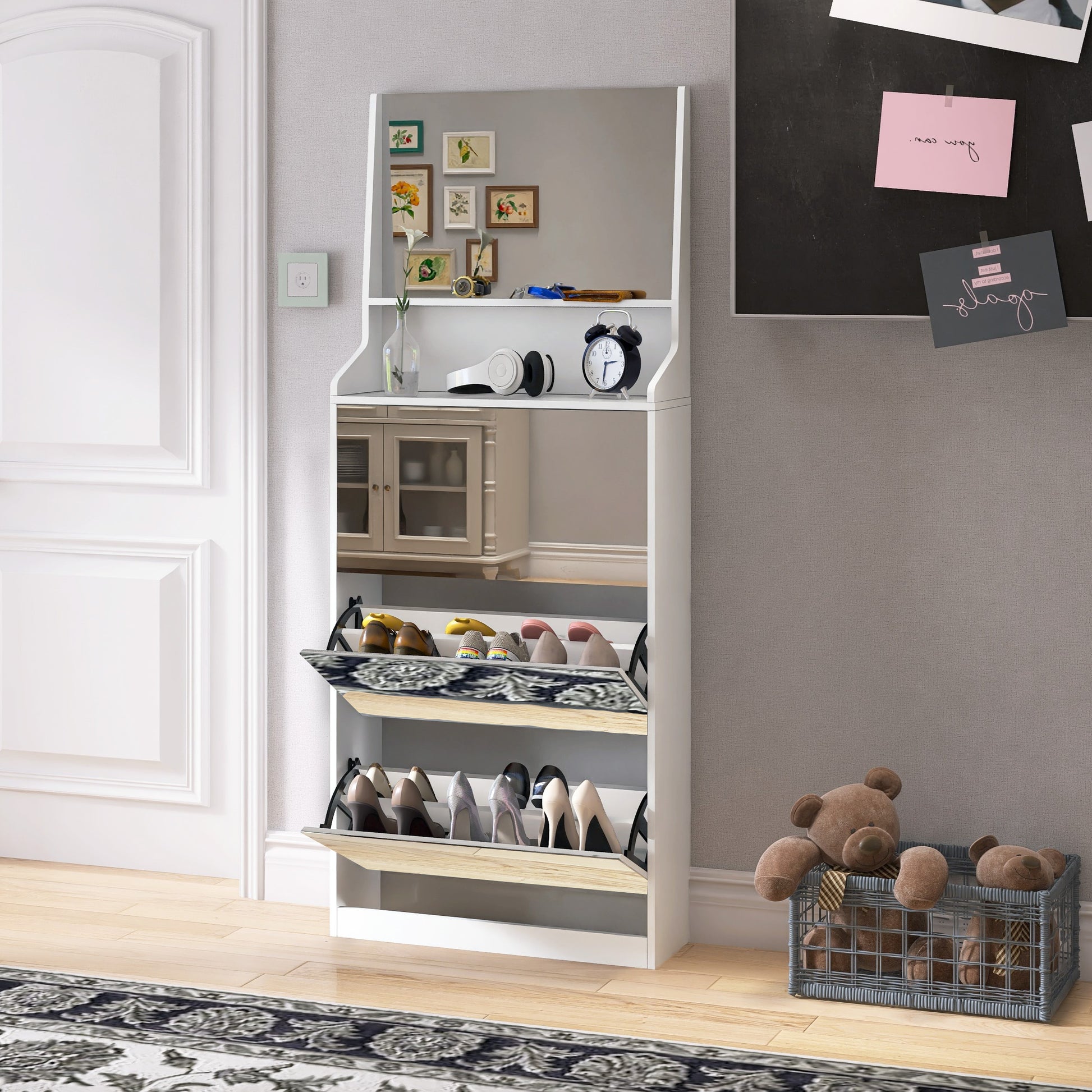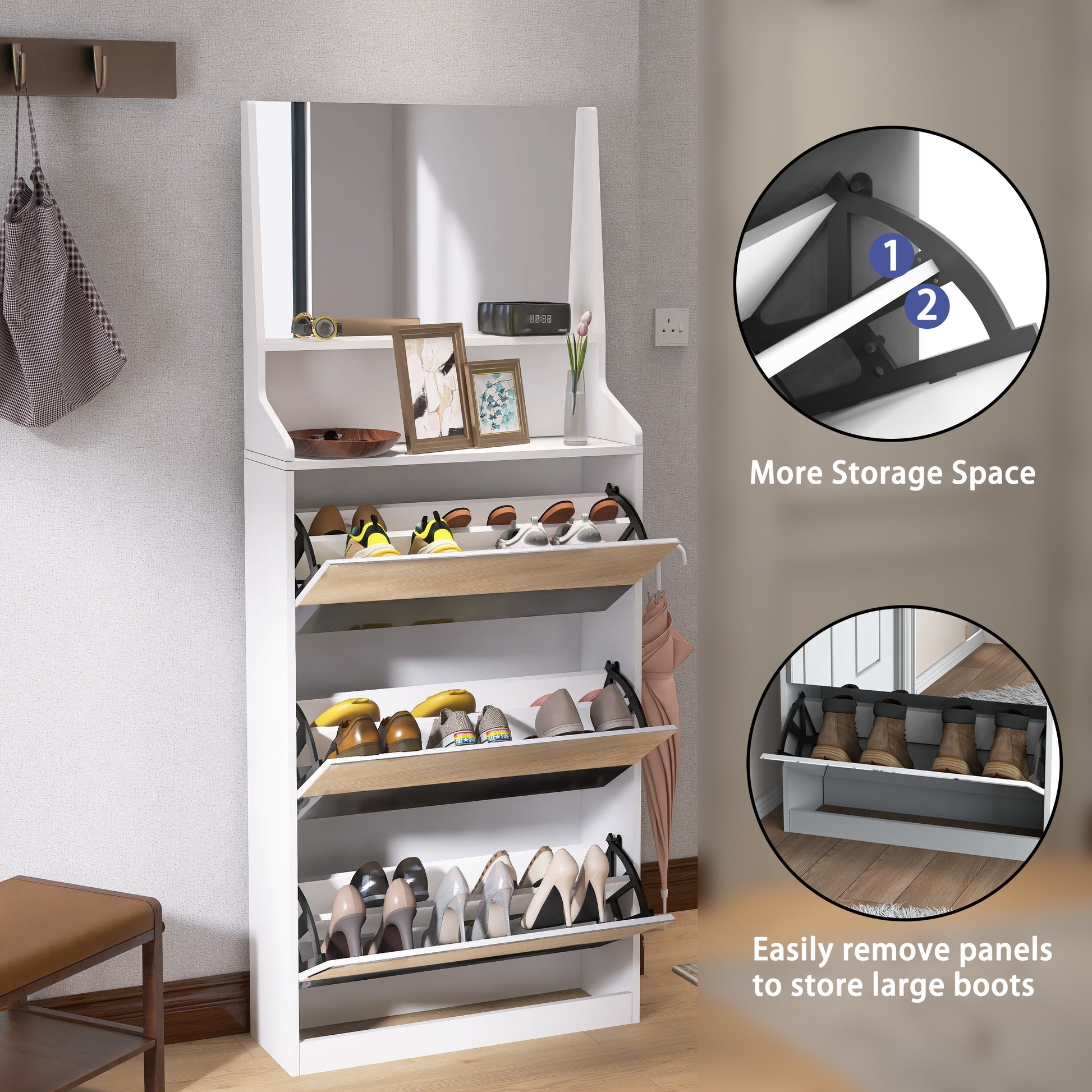Shoe Cabinet With 3 Mirrors,Shoe Storage Cabinet For Entryway,Vertical Shoe Cabinet For Front Door Entrance,Outdoor,Bedroom,White Finish Vertical White Primary Living Space Glass Doors Mdf