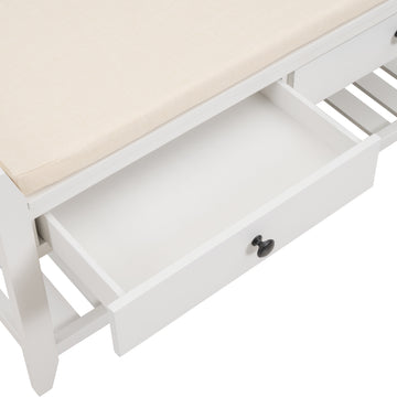 Shoe Rack With Cushioned Seat And Drawers, Multipurpose Entryway Storage Bench White White Solid Wood
