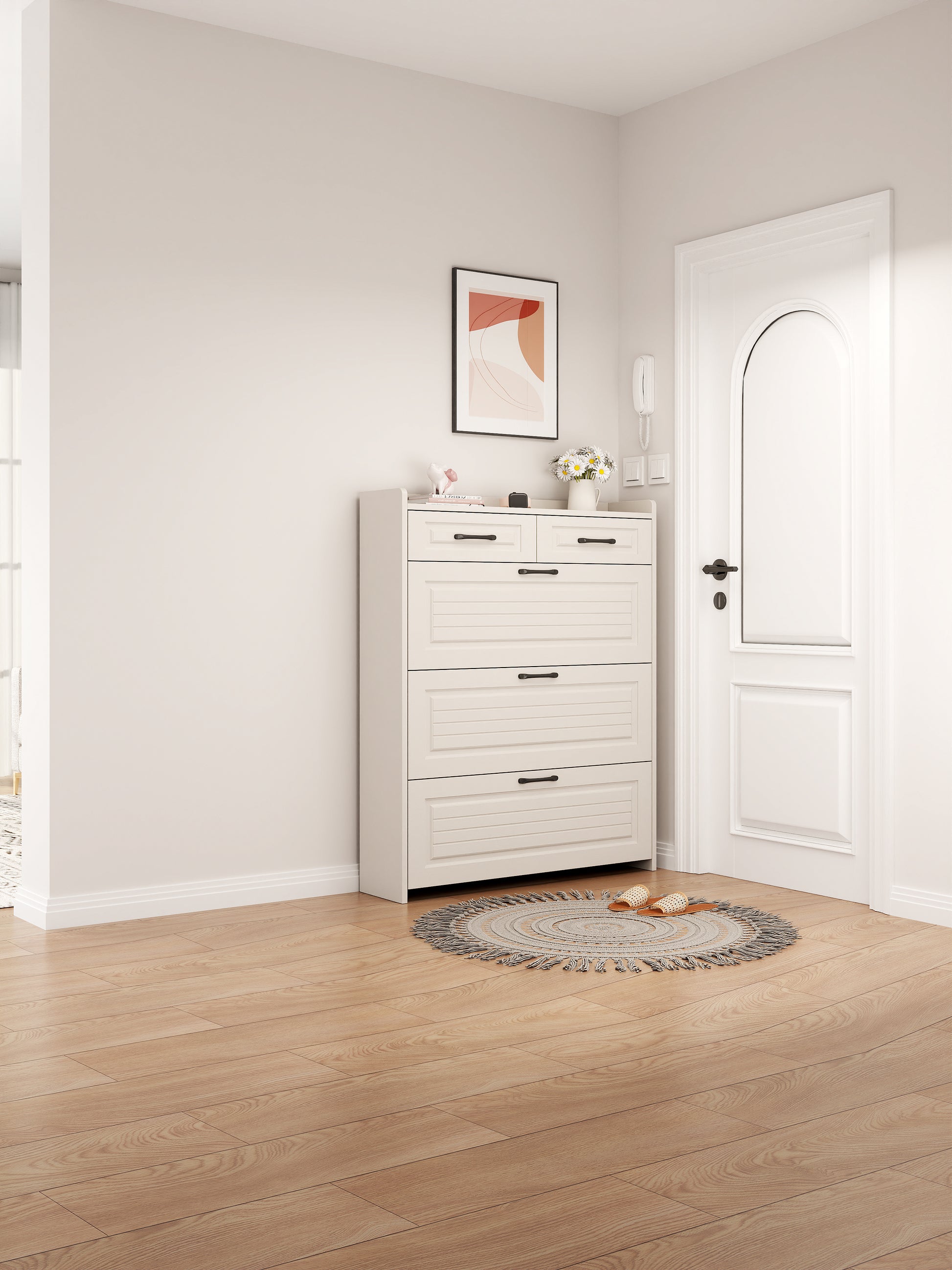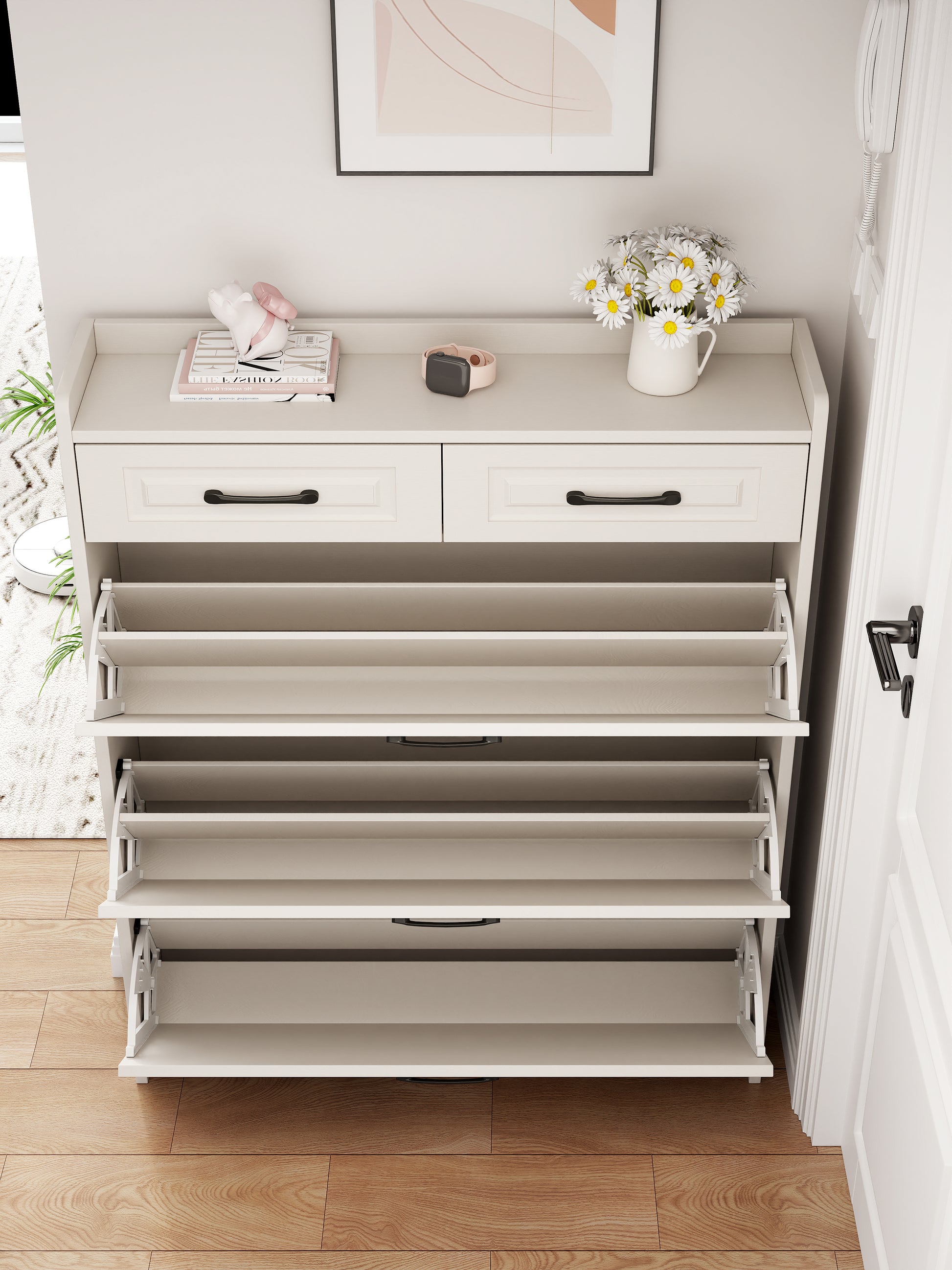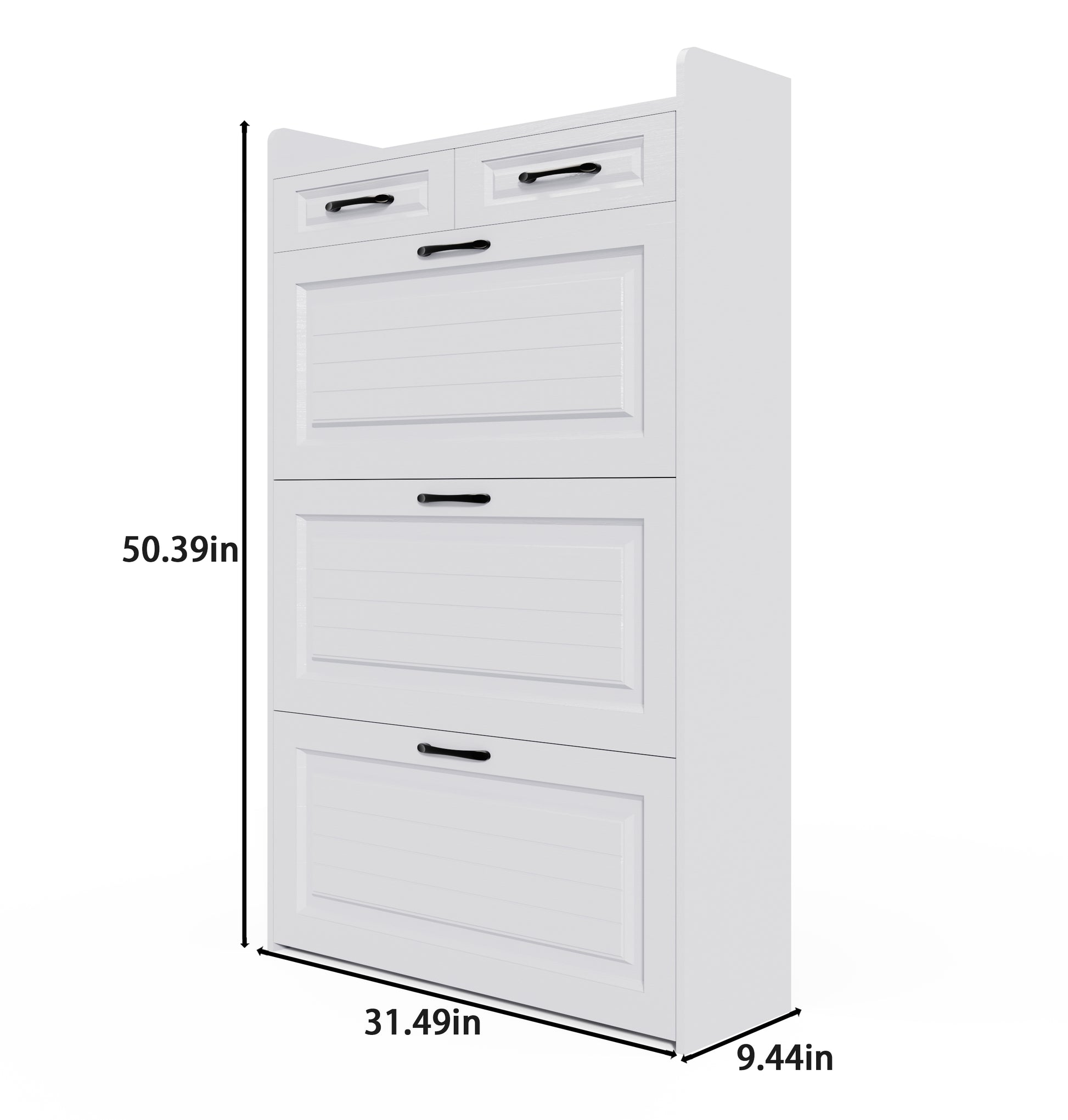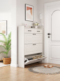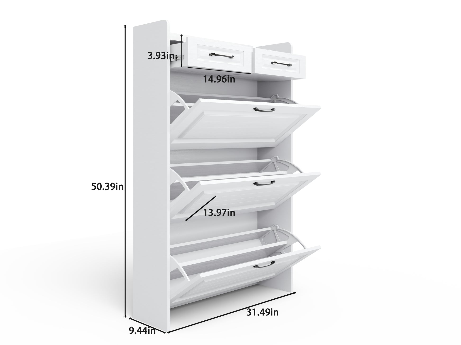 Shoe Storage Cabinet For Entryway, Hidden Shoe Cabinet With 3 Doors 2 Drawers Slim Shoe Cabinet, Freestanding Shoe Organizer Rack For Entryway, Apartment White Freestanding 5 Or More Drawers