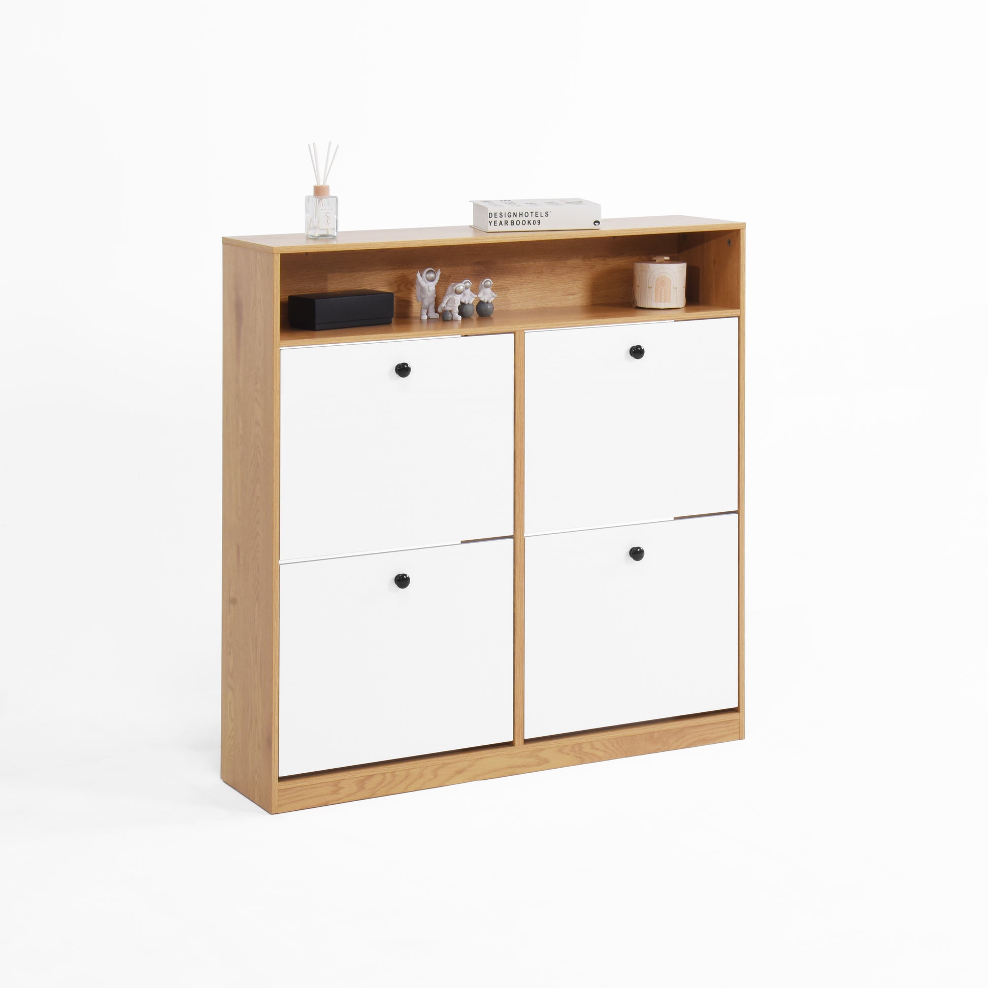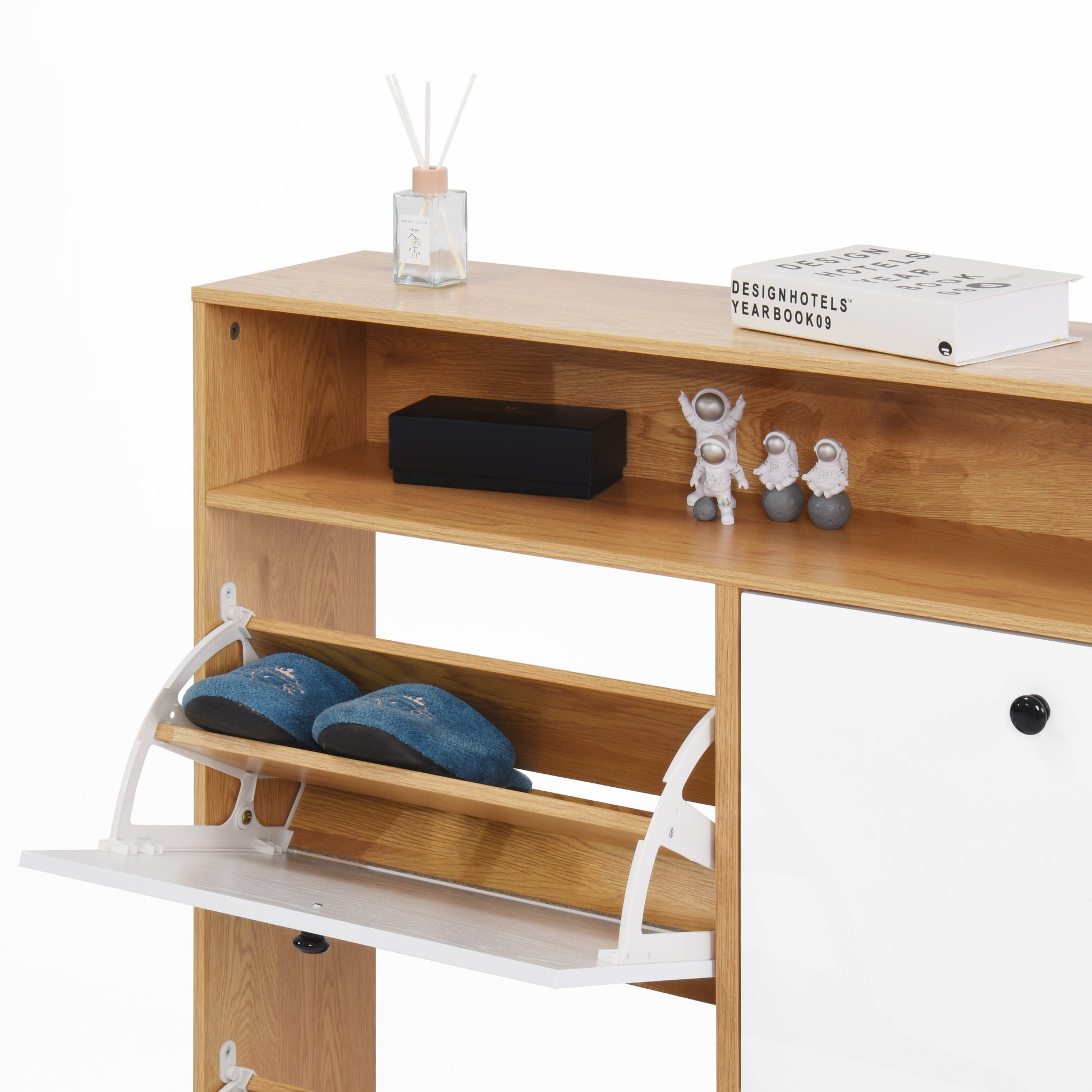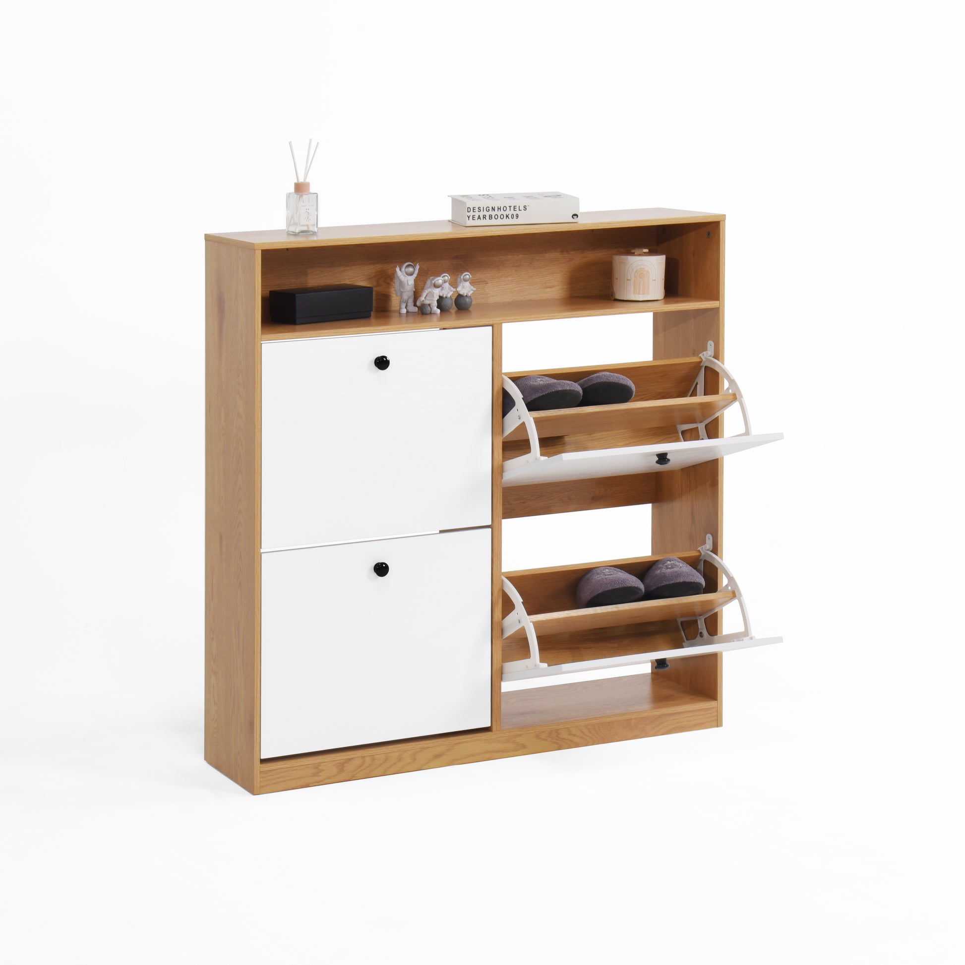 Shoe Storage Cabinet With 4 Flip Drawersshoe Rack Organizer Cabinet With Wooden Handle Freestanding Shoe Cabinet Storage With Anti Tip Fitting For Entryway, Hallway 5 Or More Spaces Natural Primary