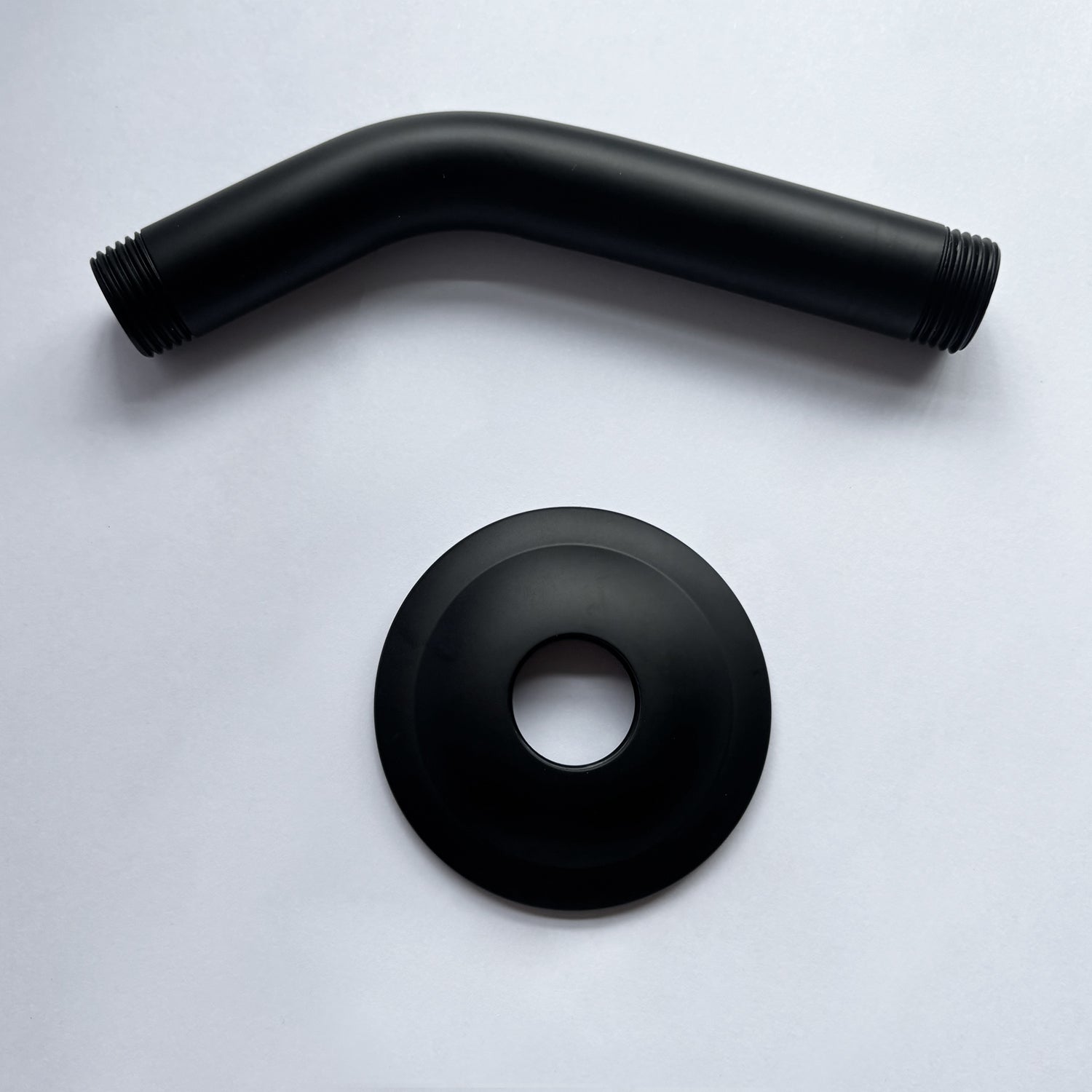 Shower Arm With Flange, 1 2 Npt Tapered Threads, Rain Shower Head Arm, Wall Mount Shower Extension Arm Matte Black Stainless Steel