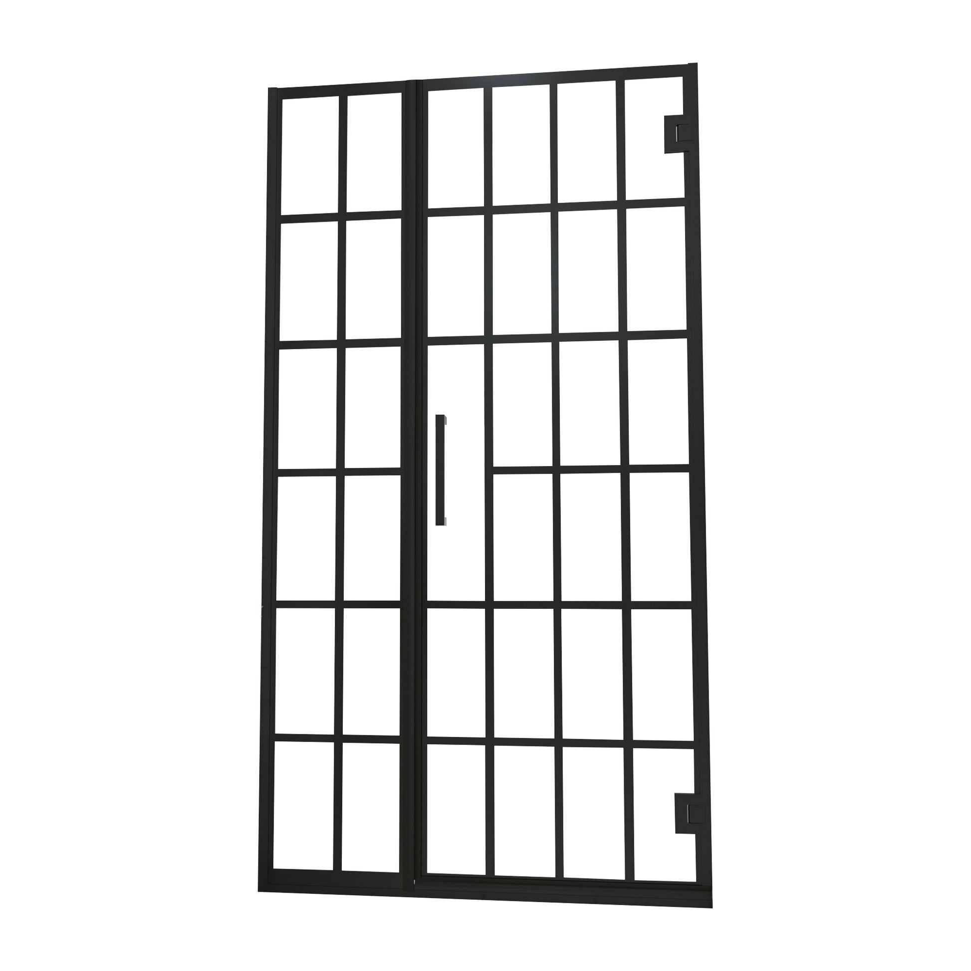 Shower Door 34" W X 72" H Pivot Frameless Shower Door With Pattern Glass, Open Entry Design In Matte Black Matte Black Glass