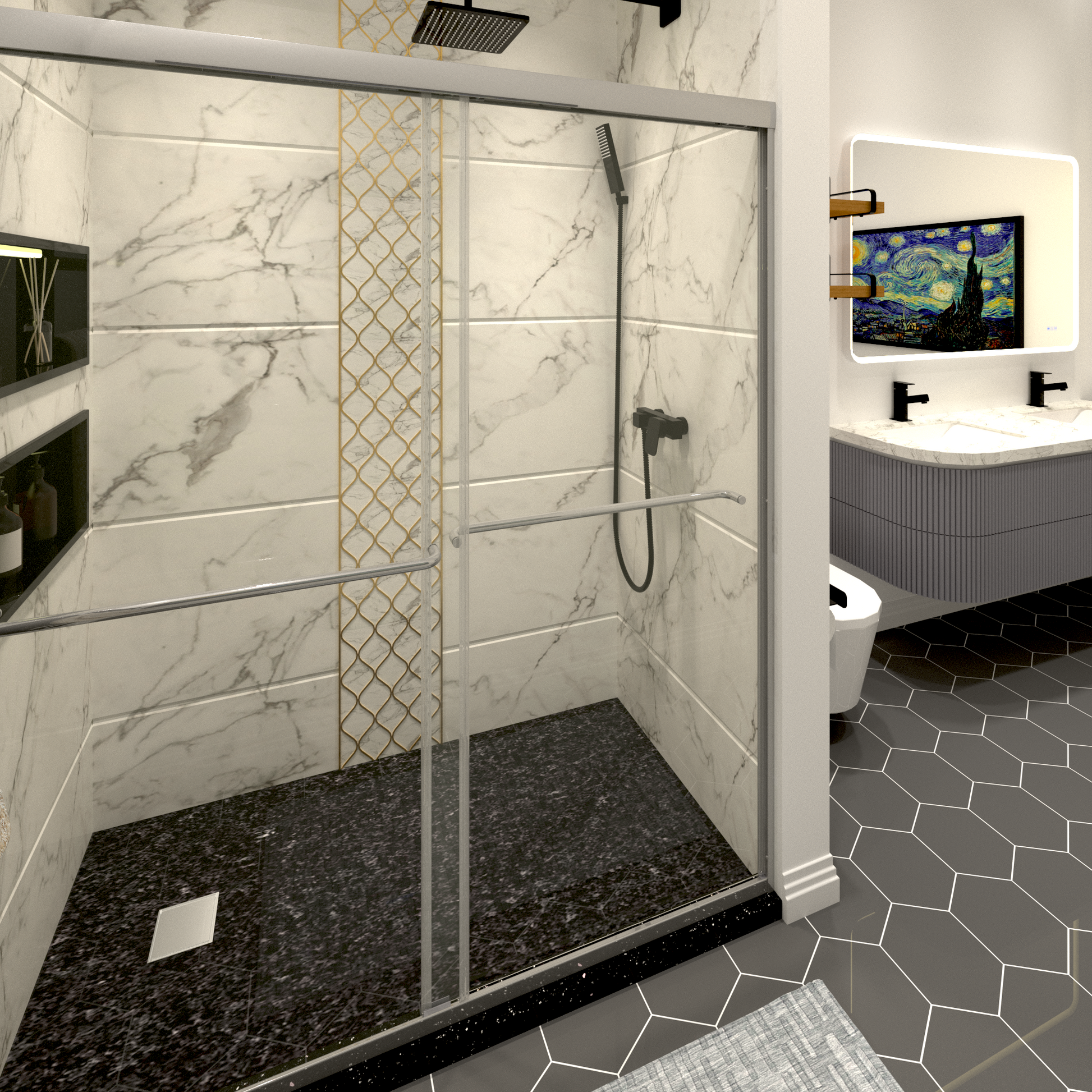 Shower Doors Chrome Tempered Glass