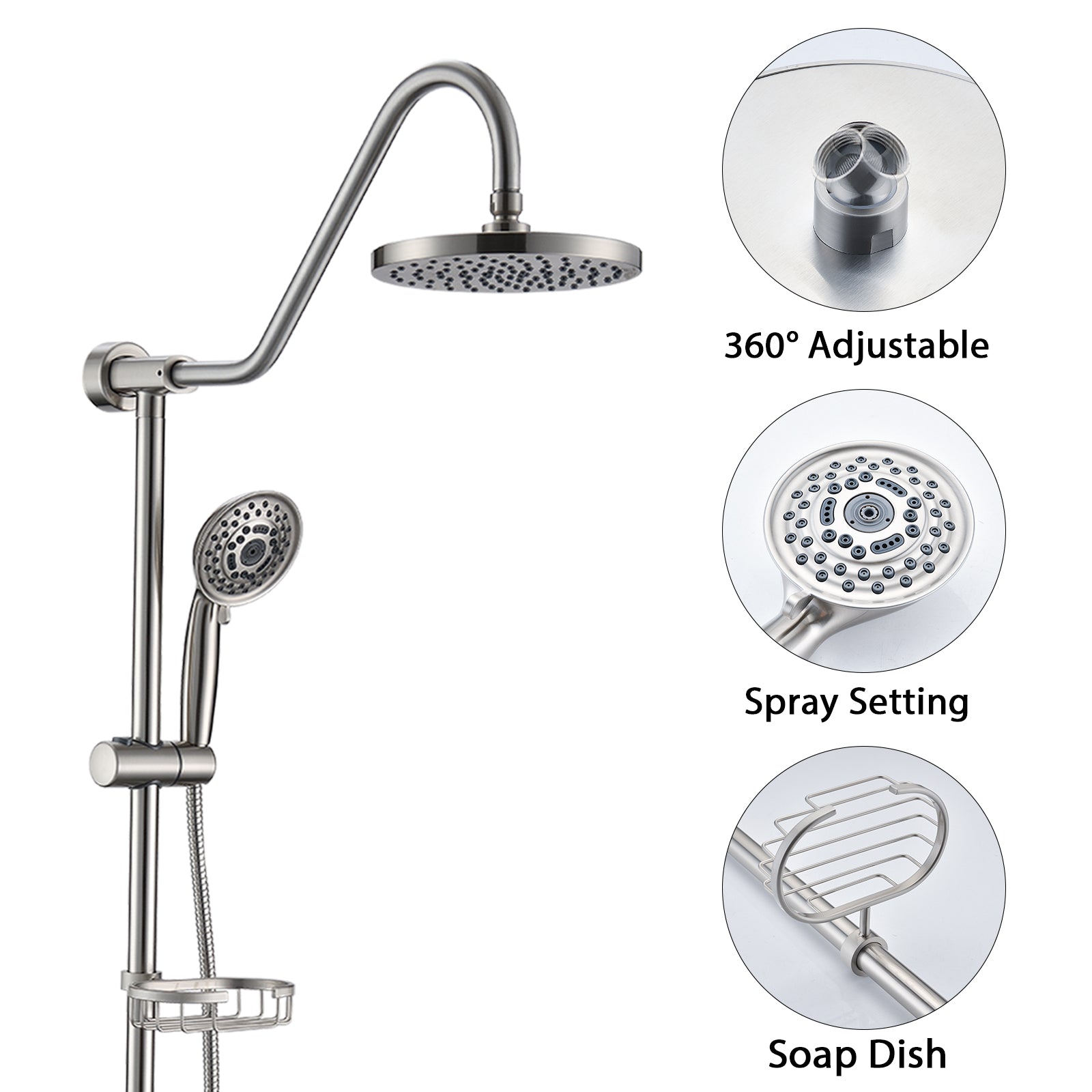 Shower Head With Handheld Shower System With 8" Rain Shower Head With Tub Spout Rough In Valve Included Brushed Nickel Stainless Steel