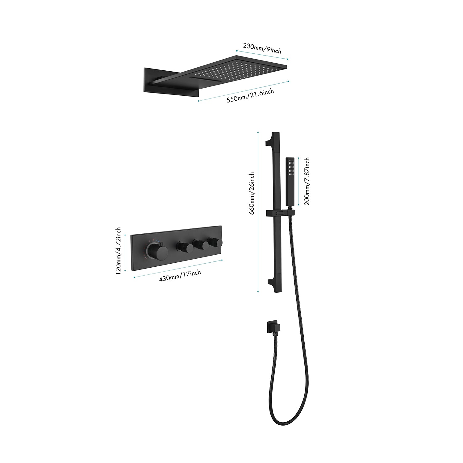 Shower System Square Bathroom Luxury Rain Mixer Shower Combo Set Pressure Balanced Shower System With Shower Head, Hand Shower, Slide Bar, Shower Arm, Hose, And Valve Trim Matte Black Bathroom Brass