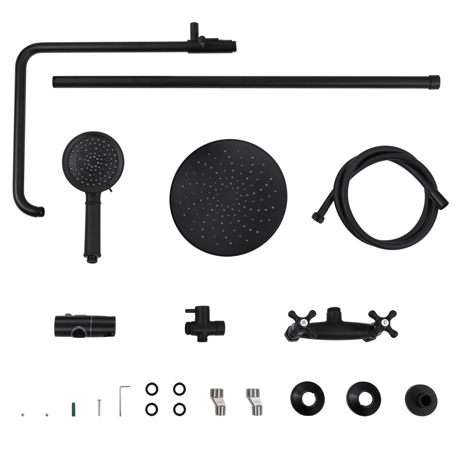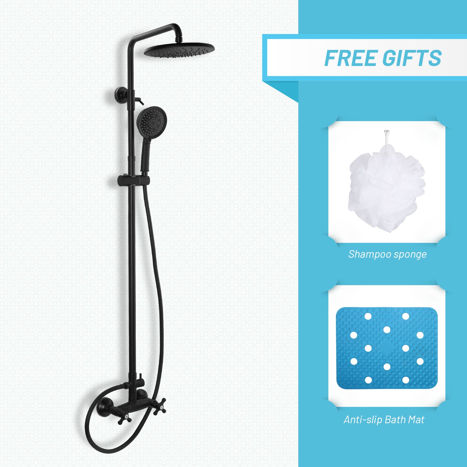 Shower System, Wall Mounted Adjustable Shower Faucet With Five Function Handheld Spray, 2 Handle Oil Rubbed Bronze Shower Set With 360 Rotation 8 Inch Rainfall Shower Head Matte Black Brass