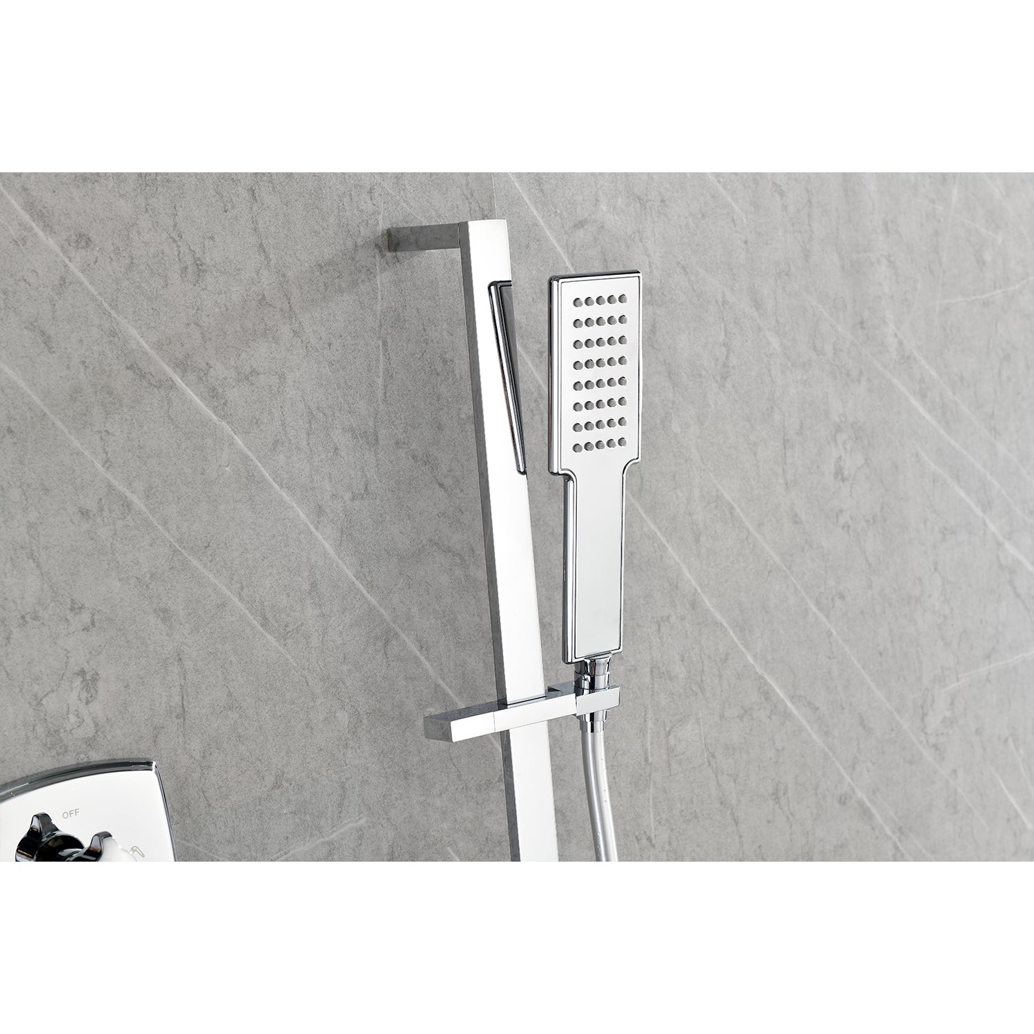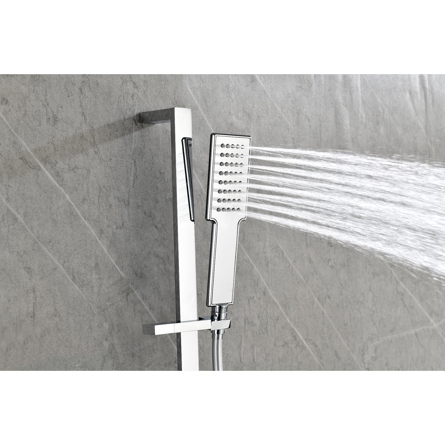 Shower System With Shower Head, Hand Shower, Slide Bar, Shower Arm, Hose, Valve Trim, And Lever Handles Chrome Wall Mounted Bathroom Brass