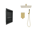 Shower System With Shower Head, Hand Shower, Hose, Valve Trim, Lever Handles And Niche Brushed Gold Brass