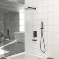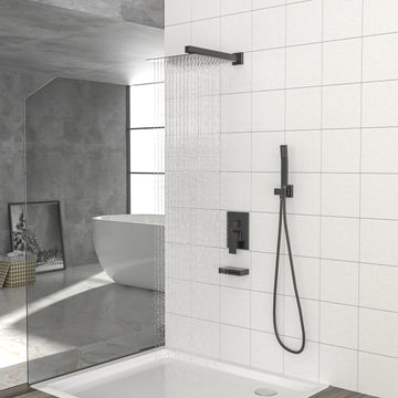 Shower System With Waterfall Tub Spout,12 Inch Wall Mounted Square Shower System With Rough In Valve,Matte Black Matte Black Stainless Steel