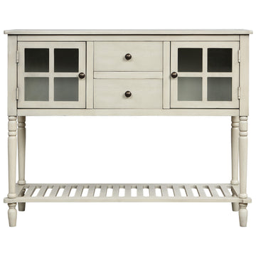 Sideboard Console Table With Bottom Shelf, Farmhouse Wood Glass Buffet Storage Cabinet Living Room Antique Grey Antique Gray Solid Wood