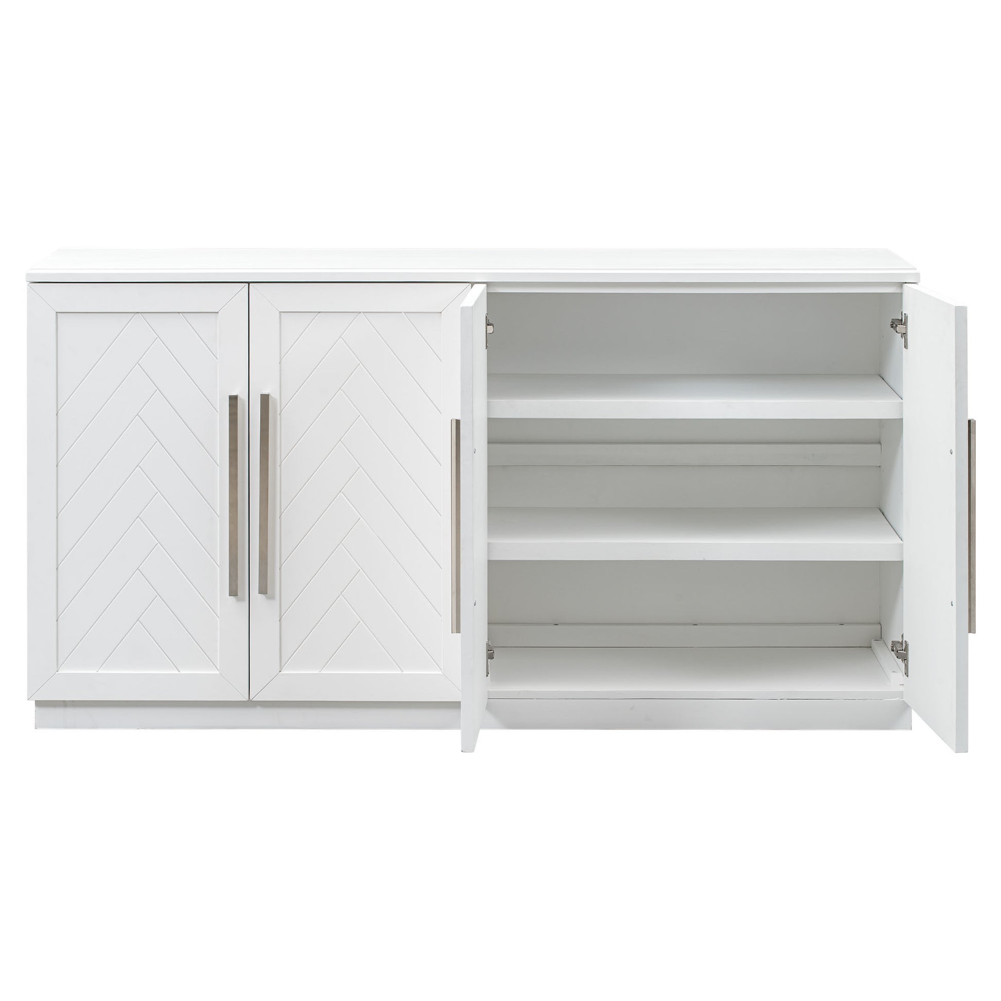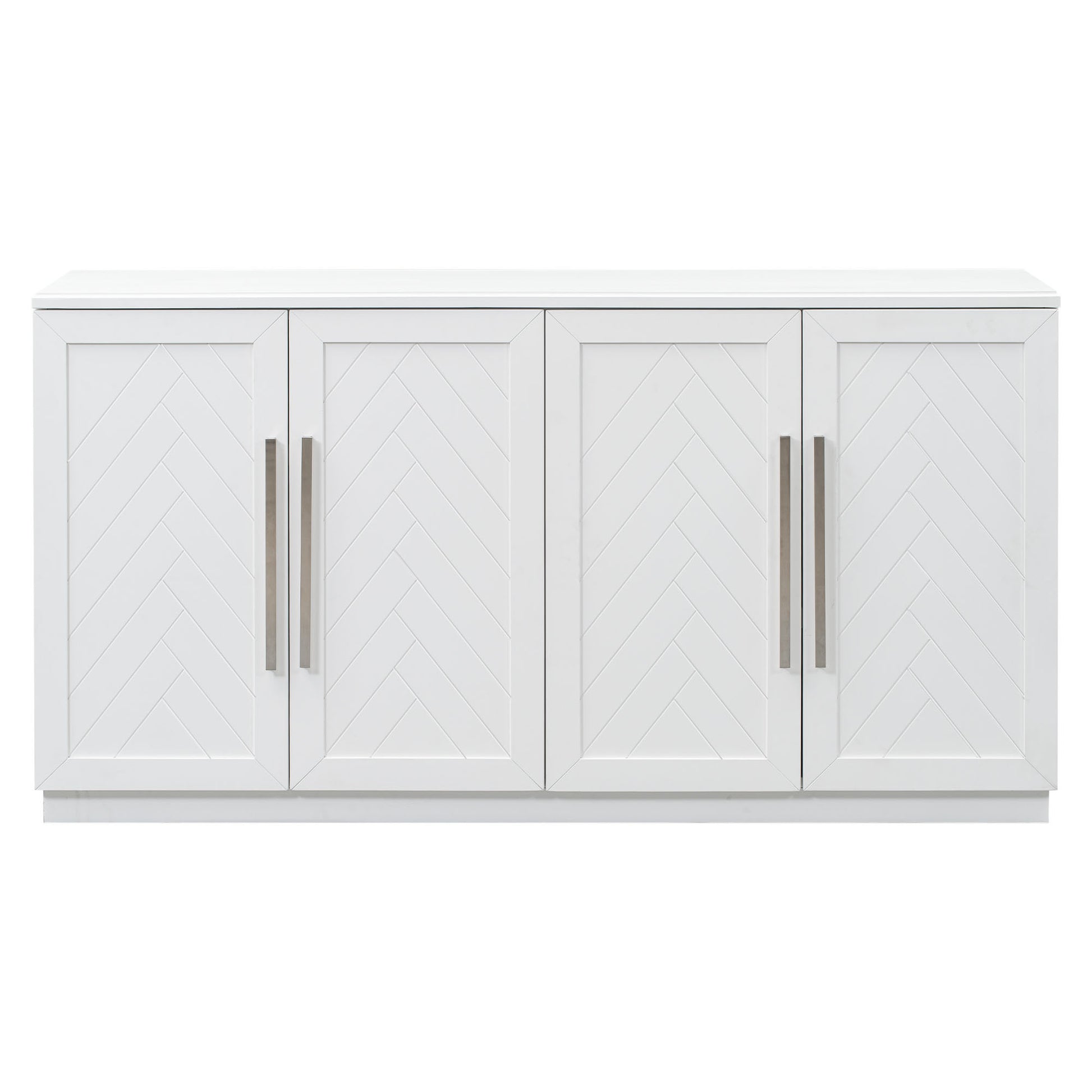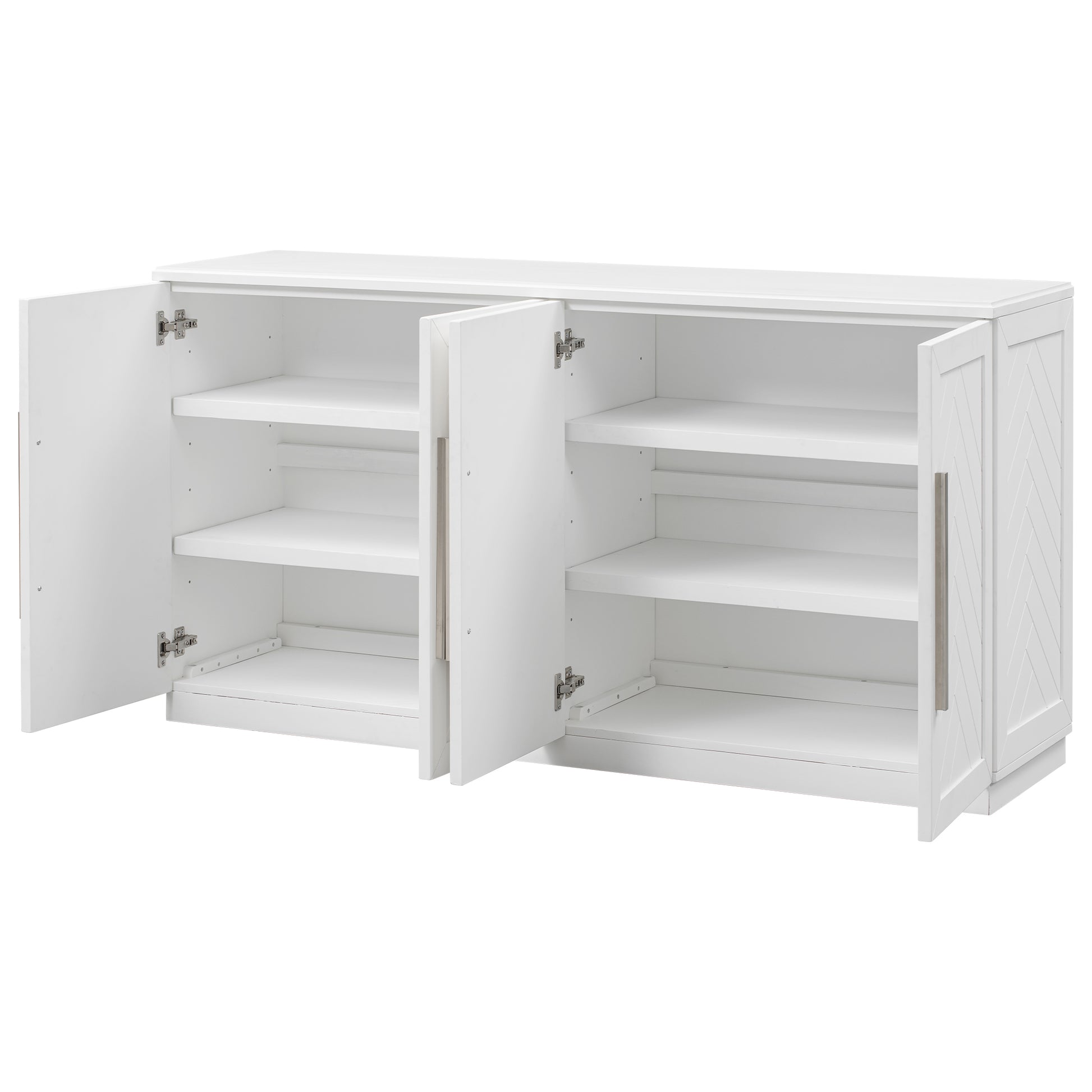 Sideboard With 4 Doors Large Storage Space Buffet Cabinet With Adjustable Shelves And Silver Handles For Kitchen, Dining Room, Living Room White White Solid Wood Mdf