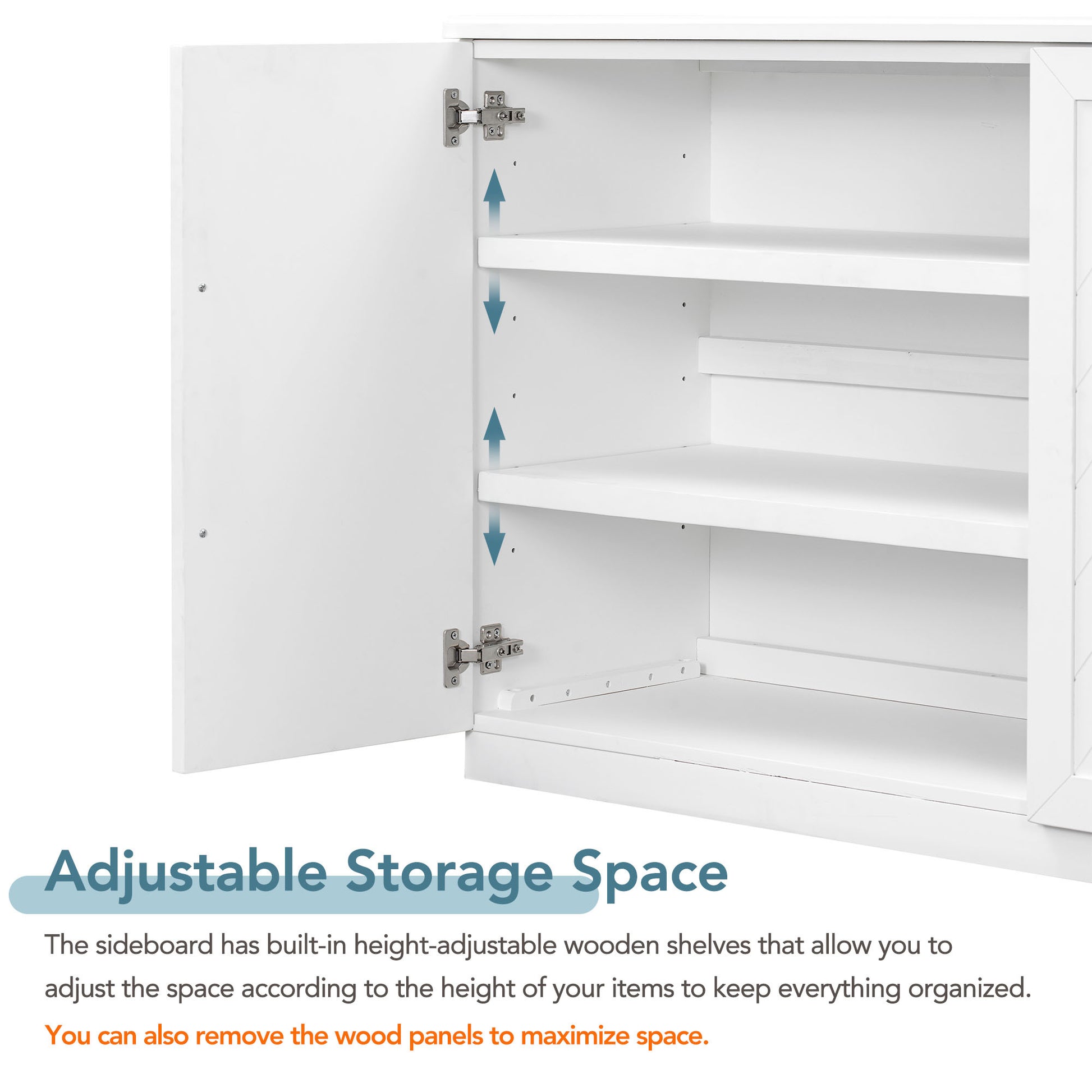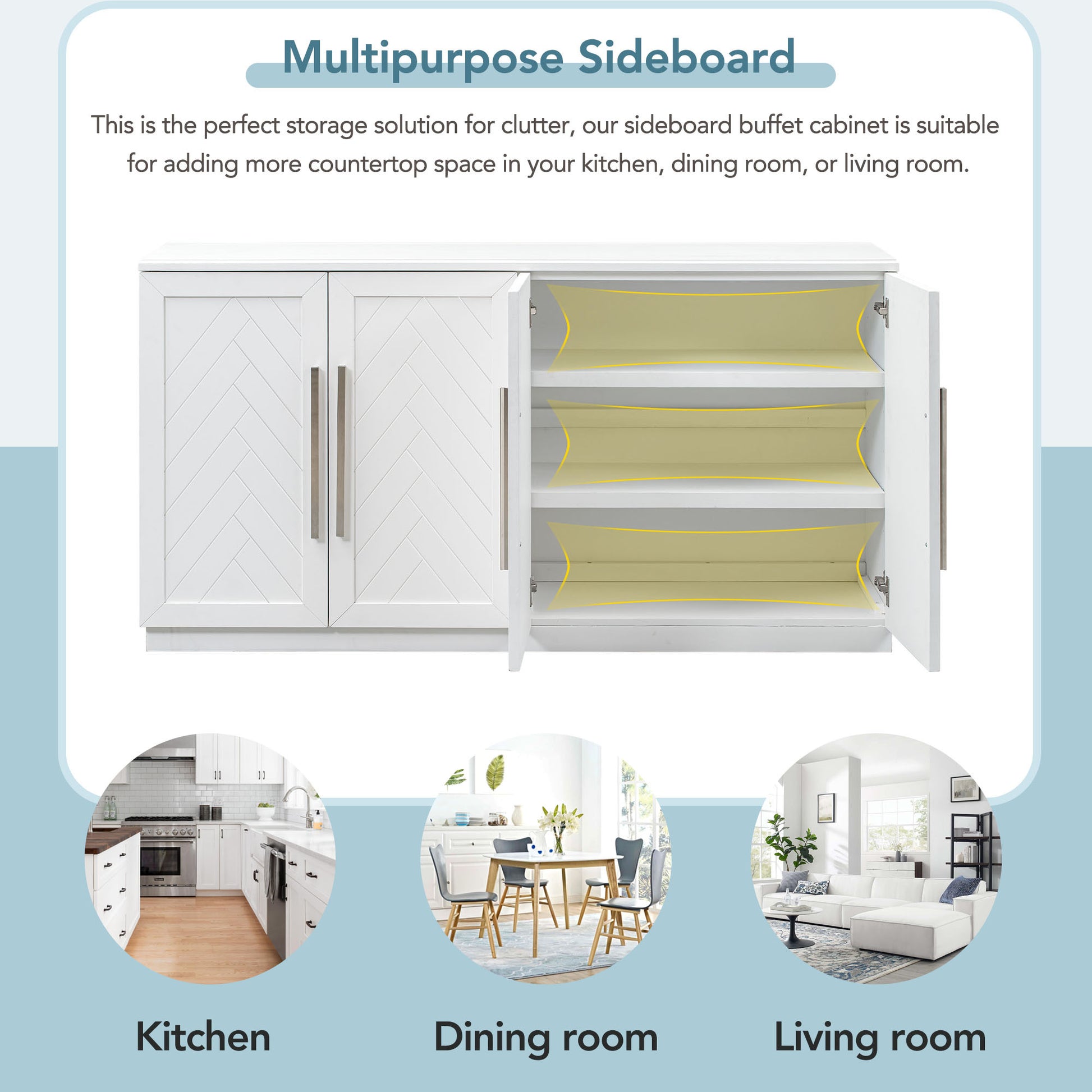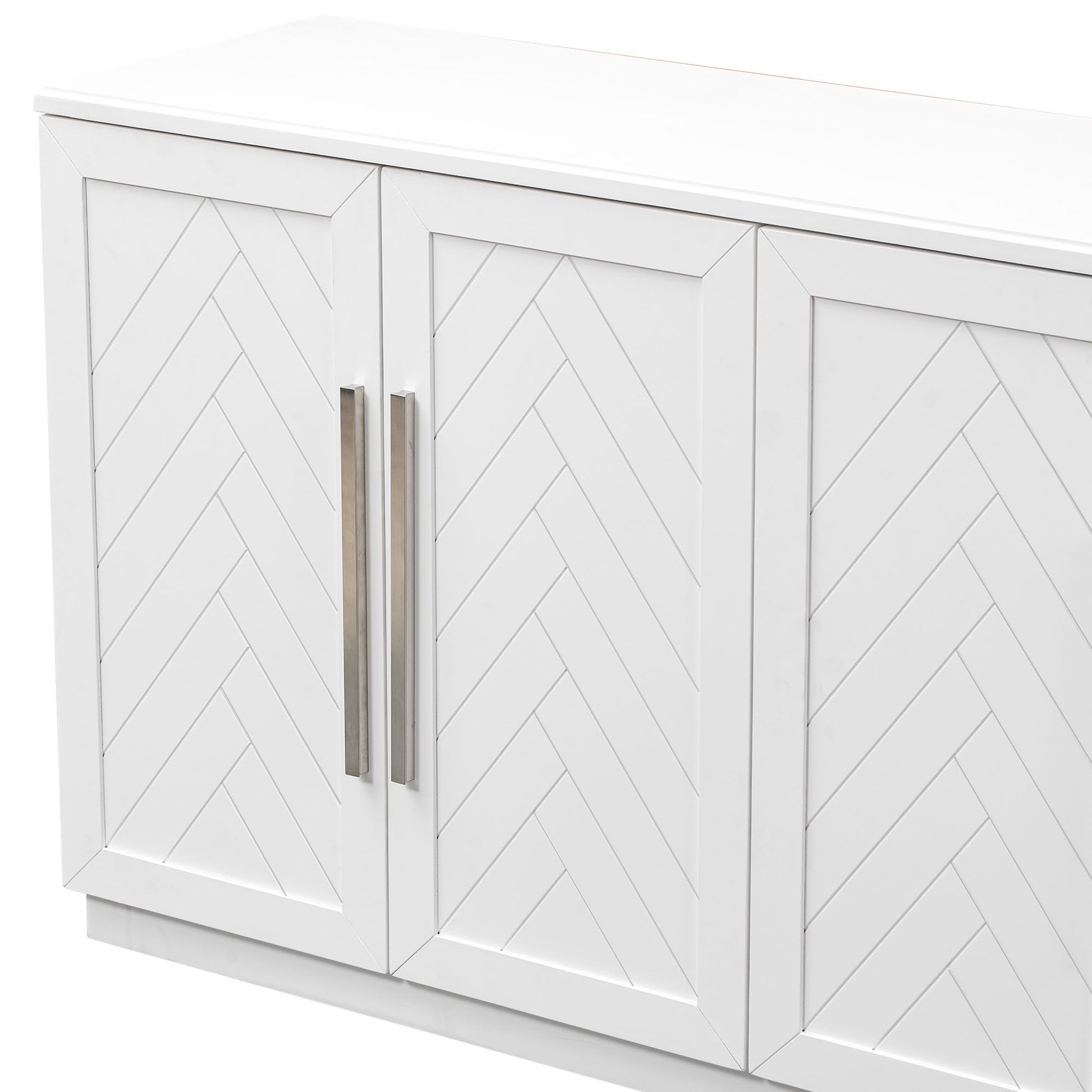 Sideboard With 4 Doors Large Storage Space Buffet Cabinet With Adjustable Shelves And Silver Handles For Kitchen, Dining Room, Living Room White White Solid Wood Mdf