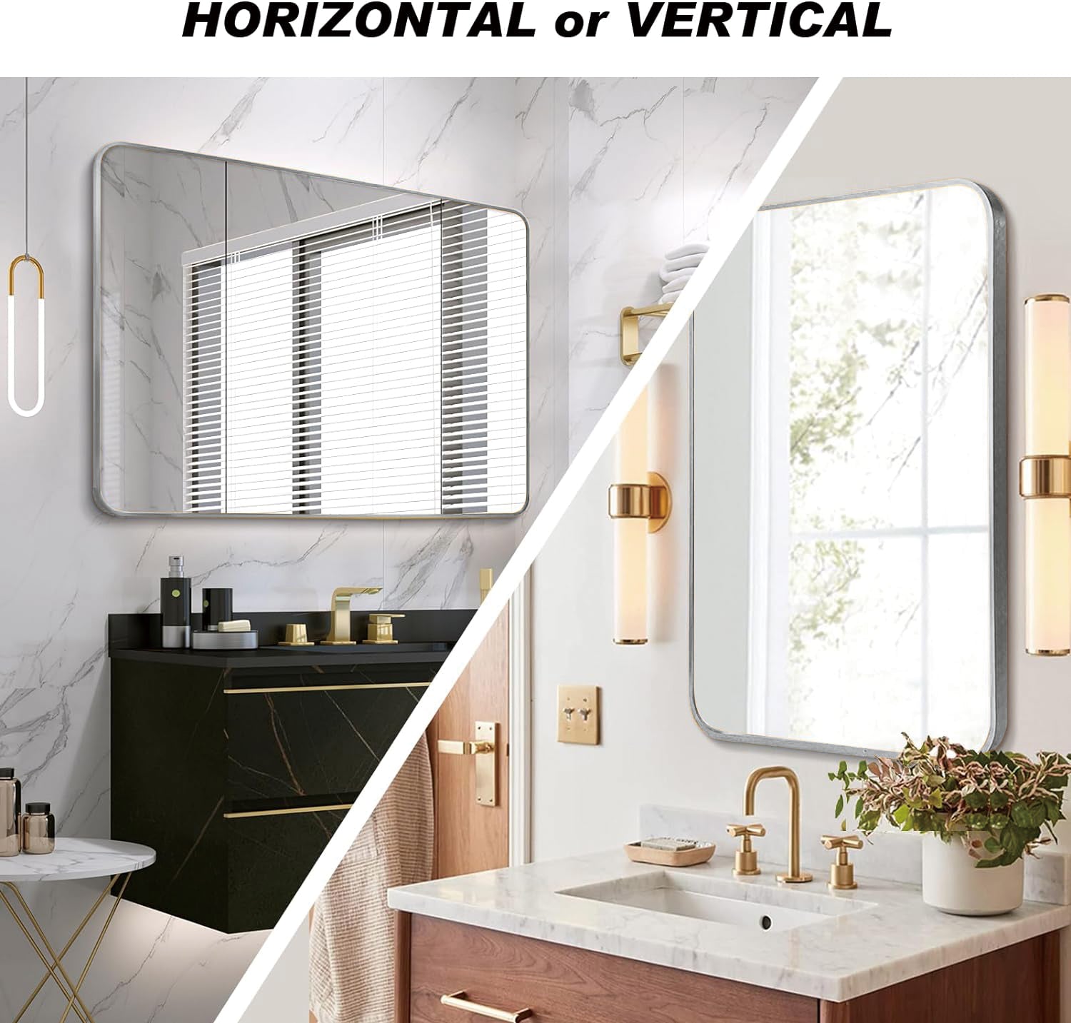 Silver 30 "X40" Rectangular Bathroom Wall Mirror Black Classic,Modern Mdf Glass Aluminium