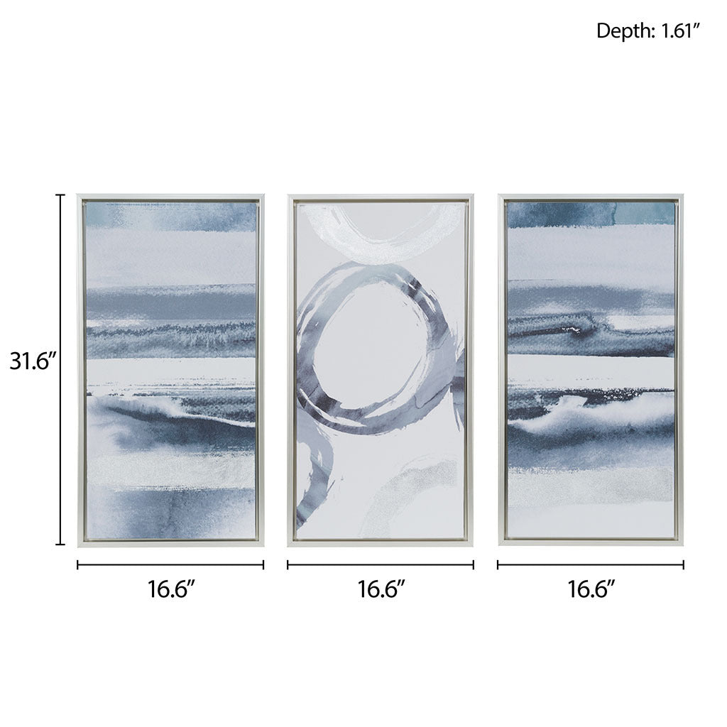Silver Foil Abstract 3 Piece Framed Canvas Wall Art Set Grey Mdf