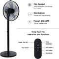 Simple Deluxe 14.5" Adjustable 12 Levels Speed Pedestal Stand Fan With Remote Control For Indoor, Home, Office And College Dorm Use, 90 Degree Horizontal Oscillating, 9 Hours Timer, 14.5 Inch, Black Black Plastic