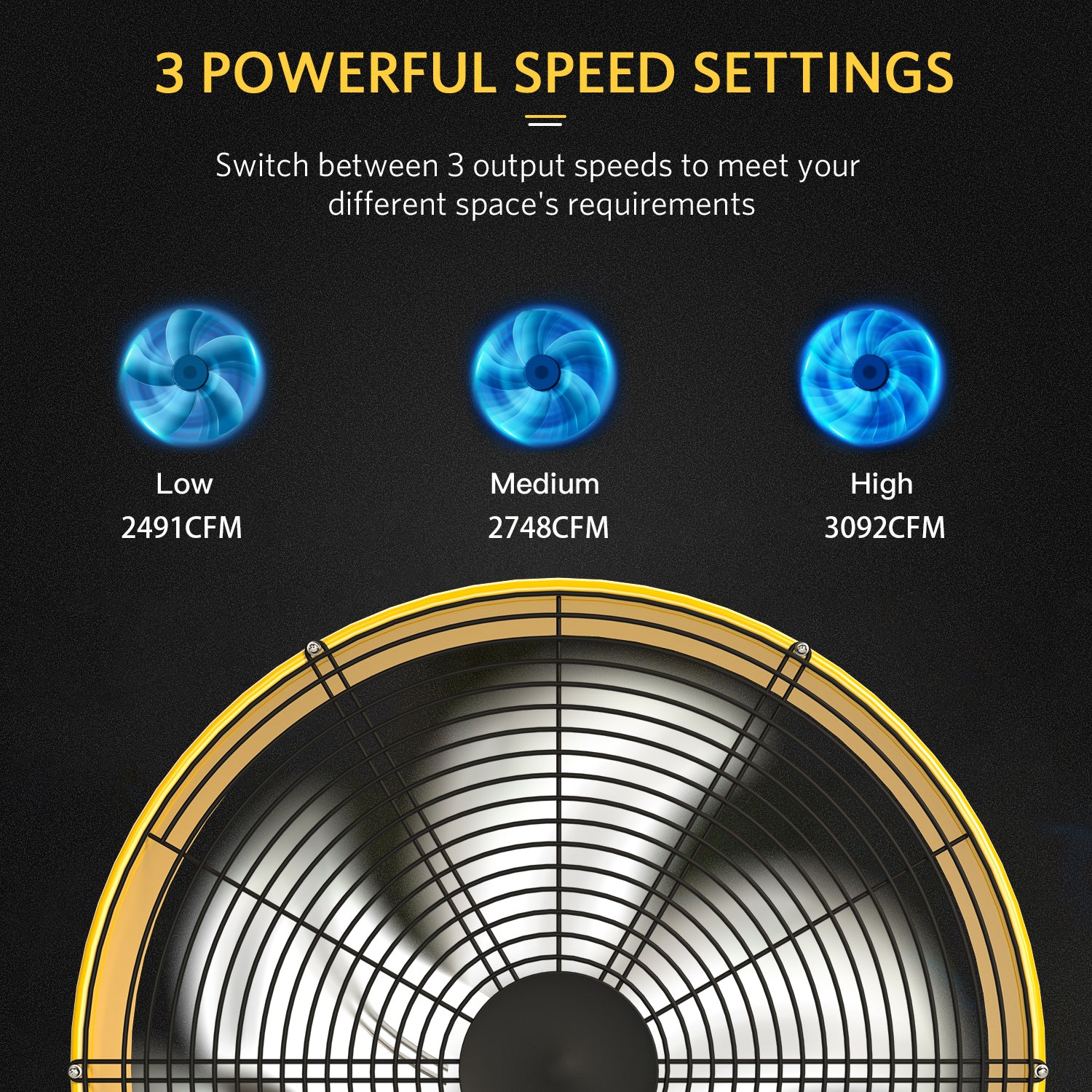 Simple Deluxe 20 Inch Heavy Duty Metal Industrial Drum Fan, 3 Speed Floor Fan For Warehouse, Workshop, Factory And Basement High Velocity, Yellow Yellow Metal