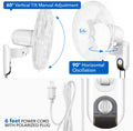 Simple Deluxe Adjustable Tilt, Quiet Operation Household Wall Mount Fans Oscillating, 2 Pack, White White Metal