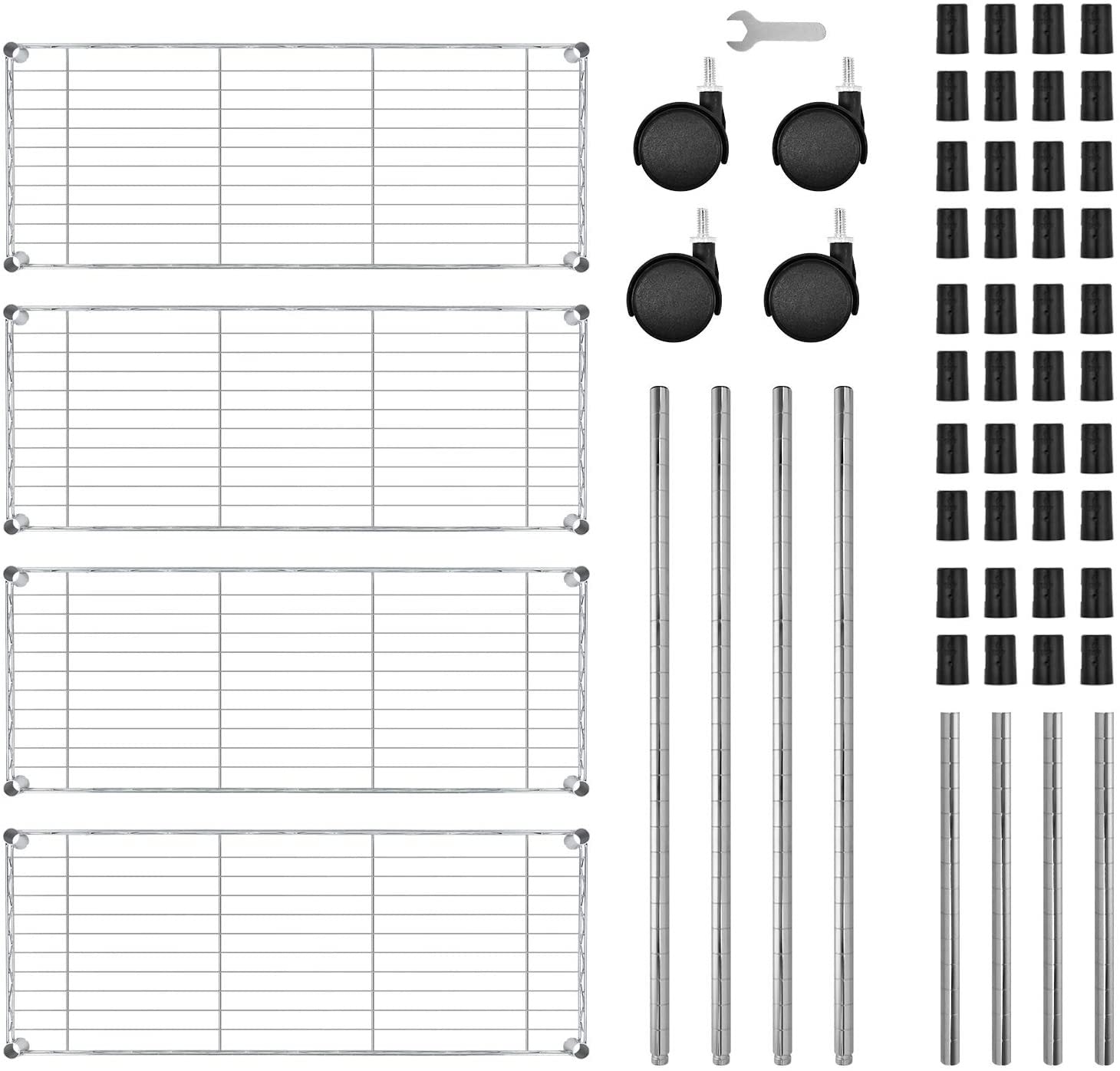 Simple Deluxe Heavy Duty 4 Shelf Shelving Unit With Wheel And Adjustable Feet, 36'' L X14'' W X54'' H , Chrome Chrome Iron