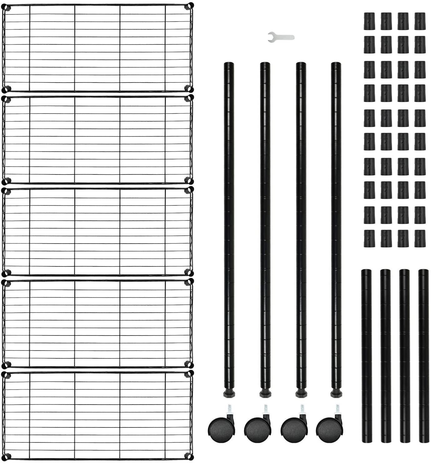 Simple Deluxe Heavy Duty 5 Shelf Shelving Unit, 29" D X 14"W X 61" H, 5 Tier, Black Silver Steel