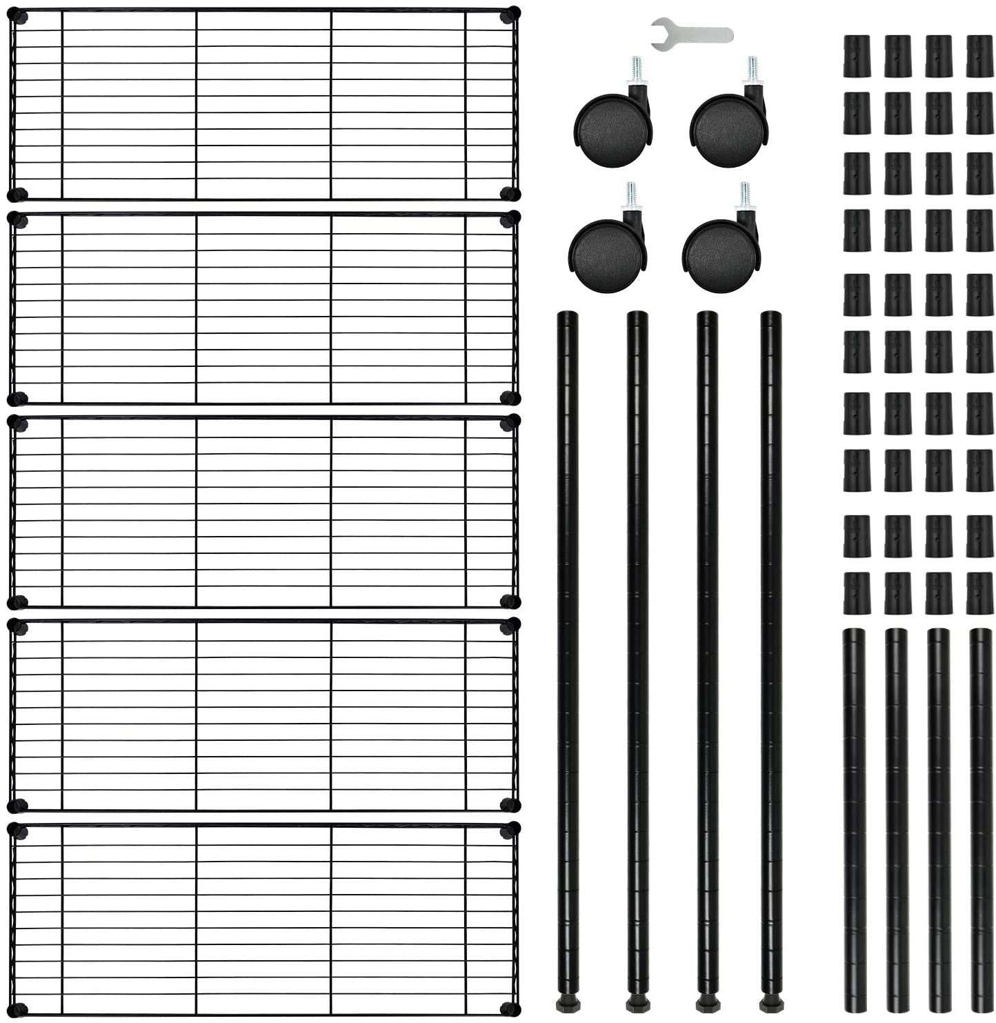 Simple Deluxe Heavy Duty 5 Shelf Shelving Unit With Wheel And Adjustable Feet, 36'' X 14'' X 60'', 5 Tier Black Iron