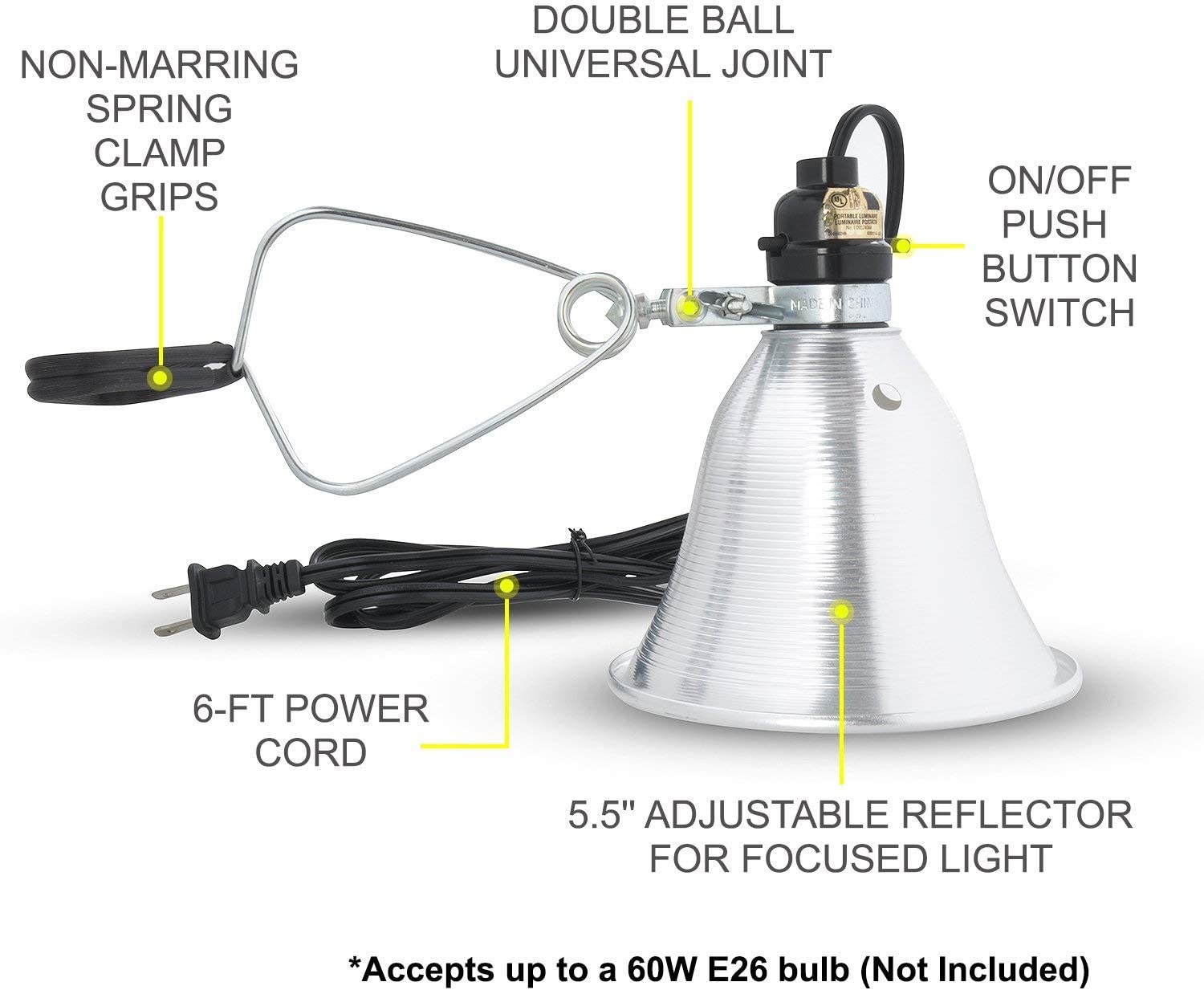 Simple Deluxe Hiwkltclamplightsx12 12 Pack Clamp Lamp Light With 5.5 Inch Aluminum Reflector Up To 60 Watt E26 E27 No Bulb Included 6 Feet 18 2 Spt 2 Cord, Silver White Metal