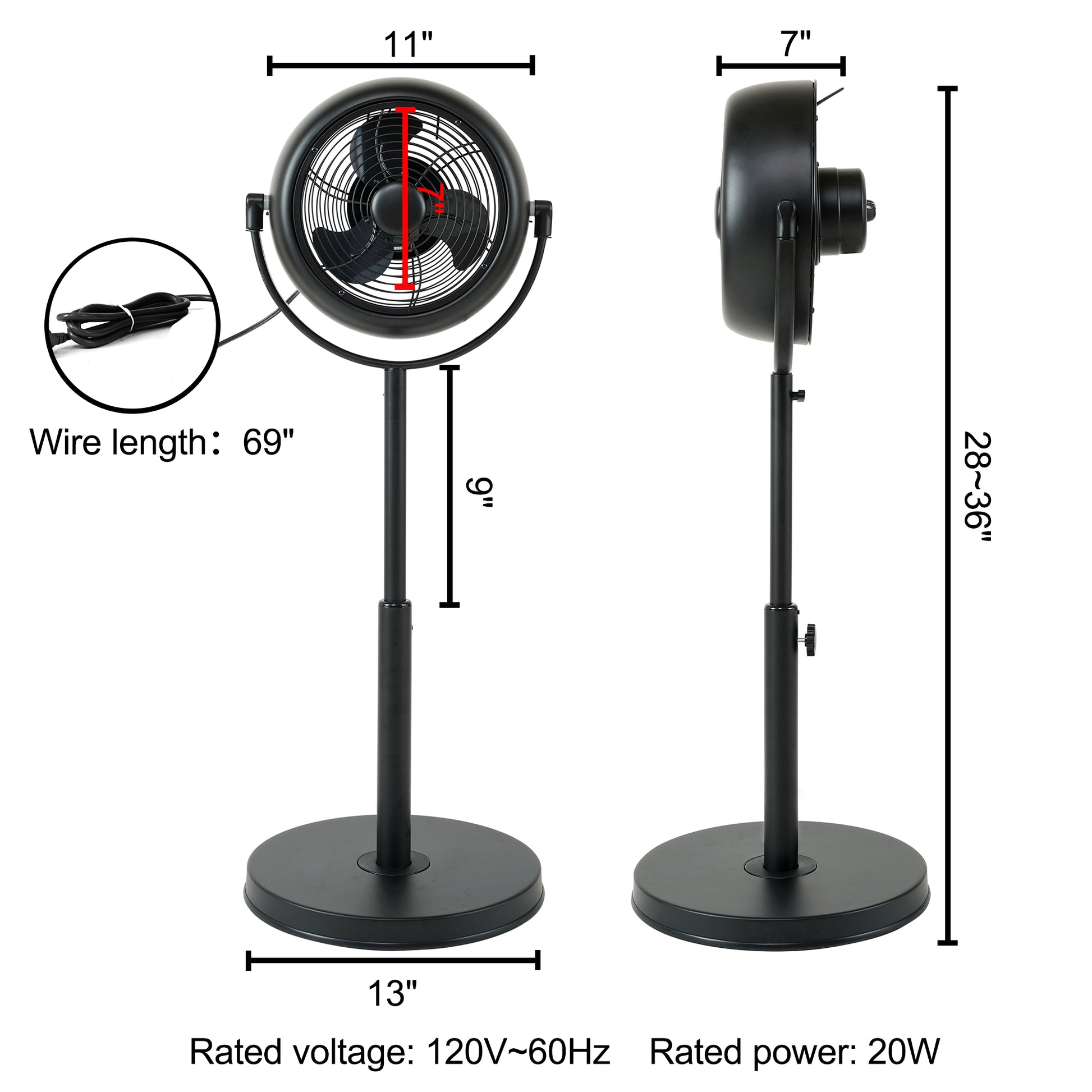 Simple Deluxe Industrial Retro Pedestal Fan, 360 Rotatable Stand Fan, 3 Speed Adjustable, Adjustable Height Pedestal Stand Fan Suitable For Industrial, Commercial, Residential,8 Inch,Black Black Metal