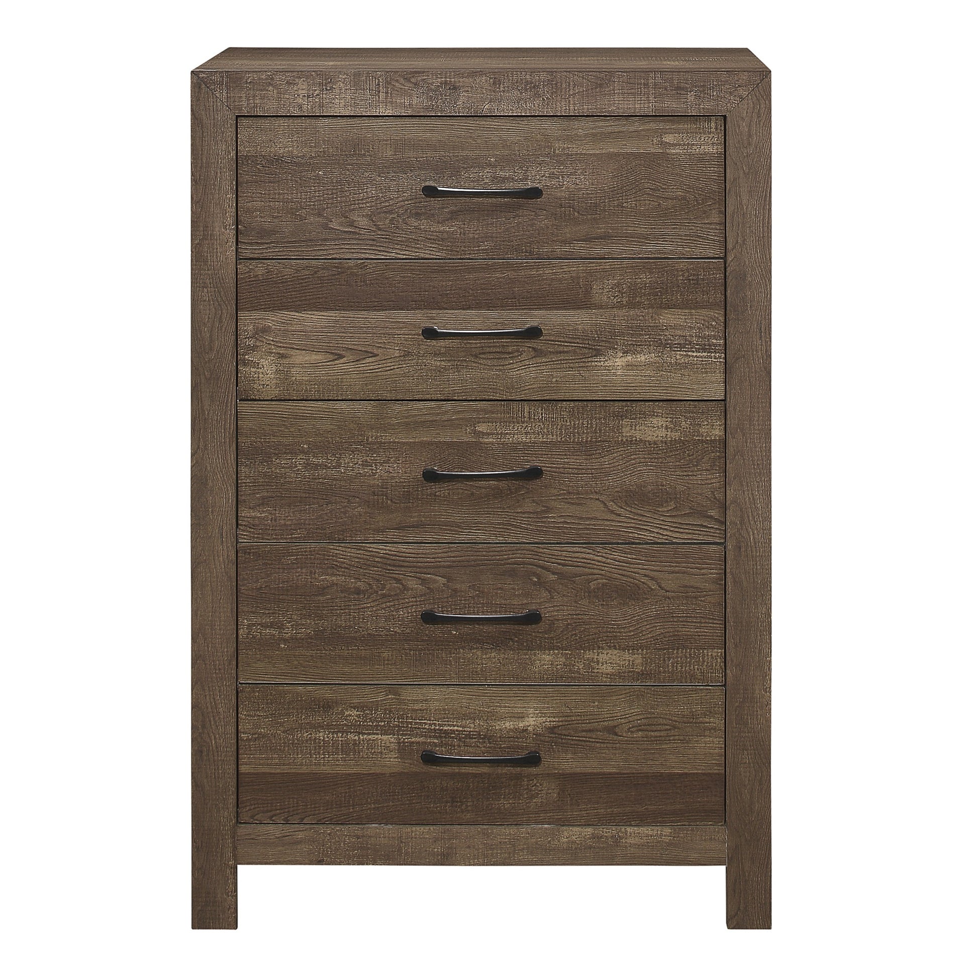 Simple Look Rustic Brown Finish 1Pc Chest Of 5X Drawers Black Metal Hardware Bedroom Furniture Rustic Brown Bedroom Wood