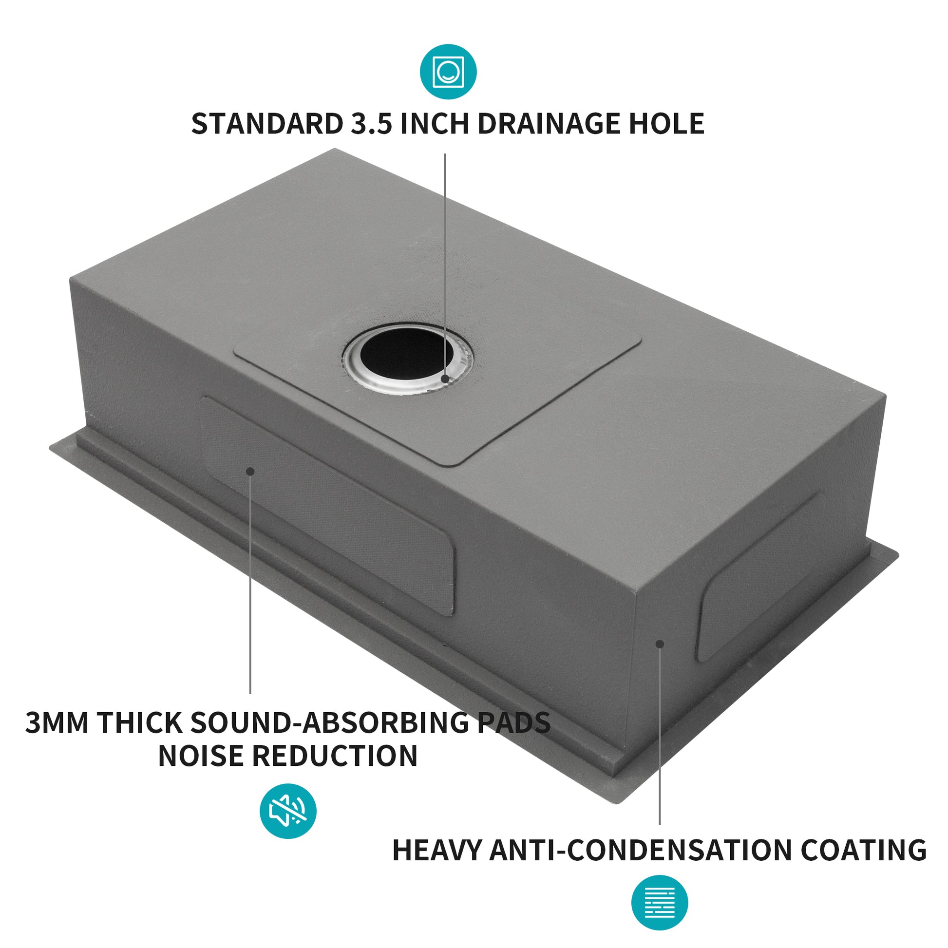 Single Bowl Undermount Workstation Kitchen Sink 33"X19"X 10" Inch 16 Gauge Stainless Steel Deep Sink Brushed Nickel Stainless Steel