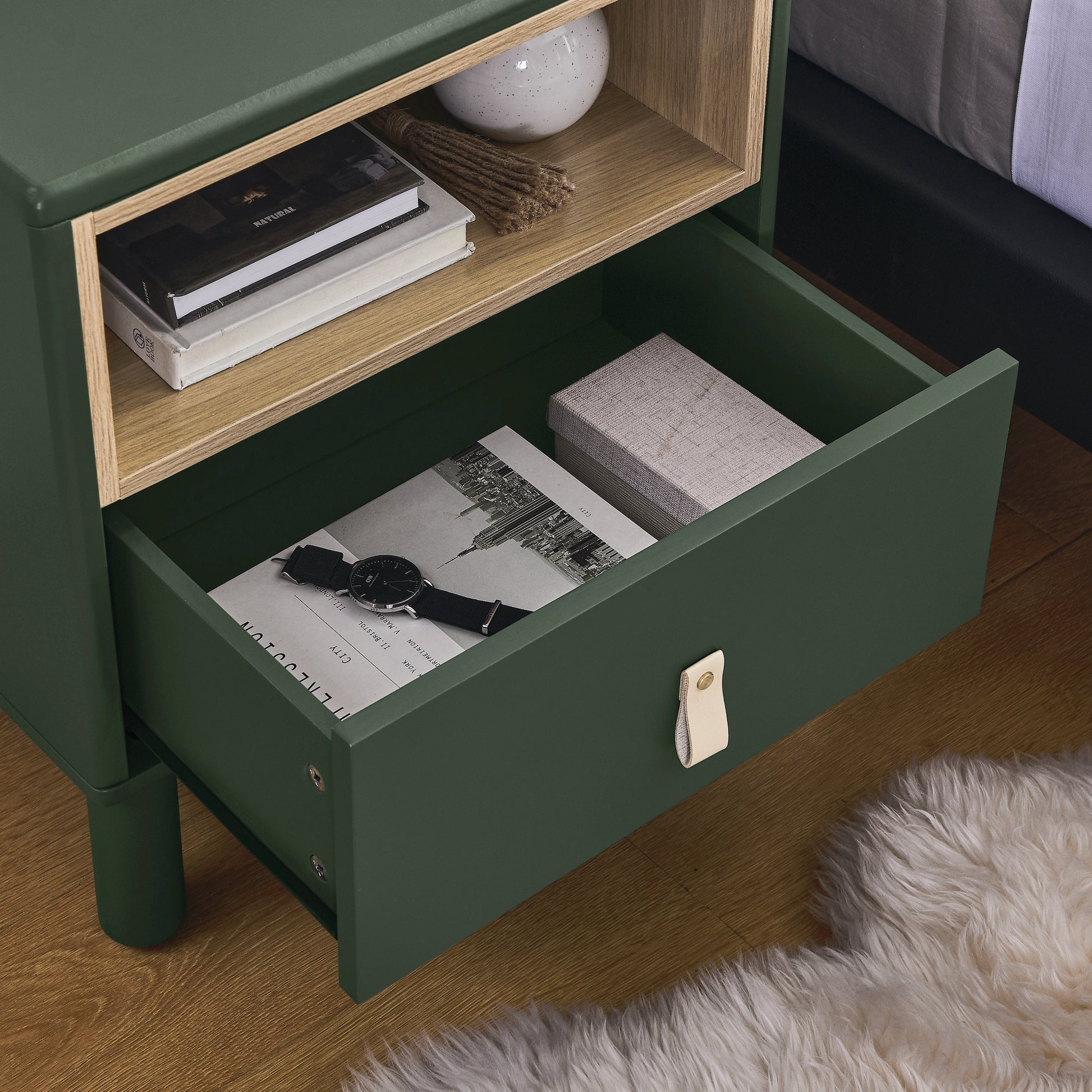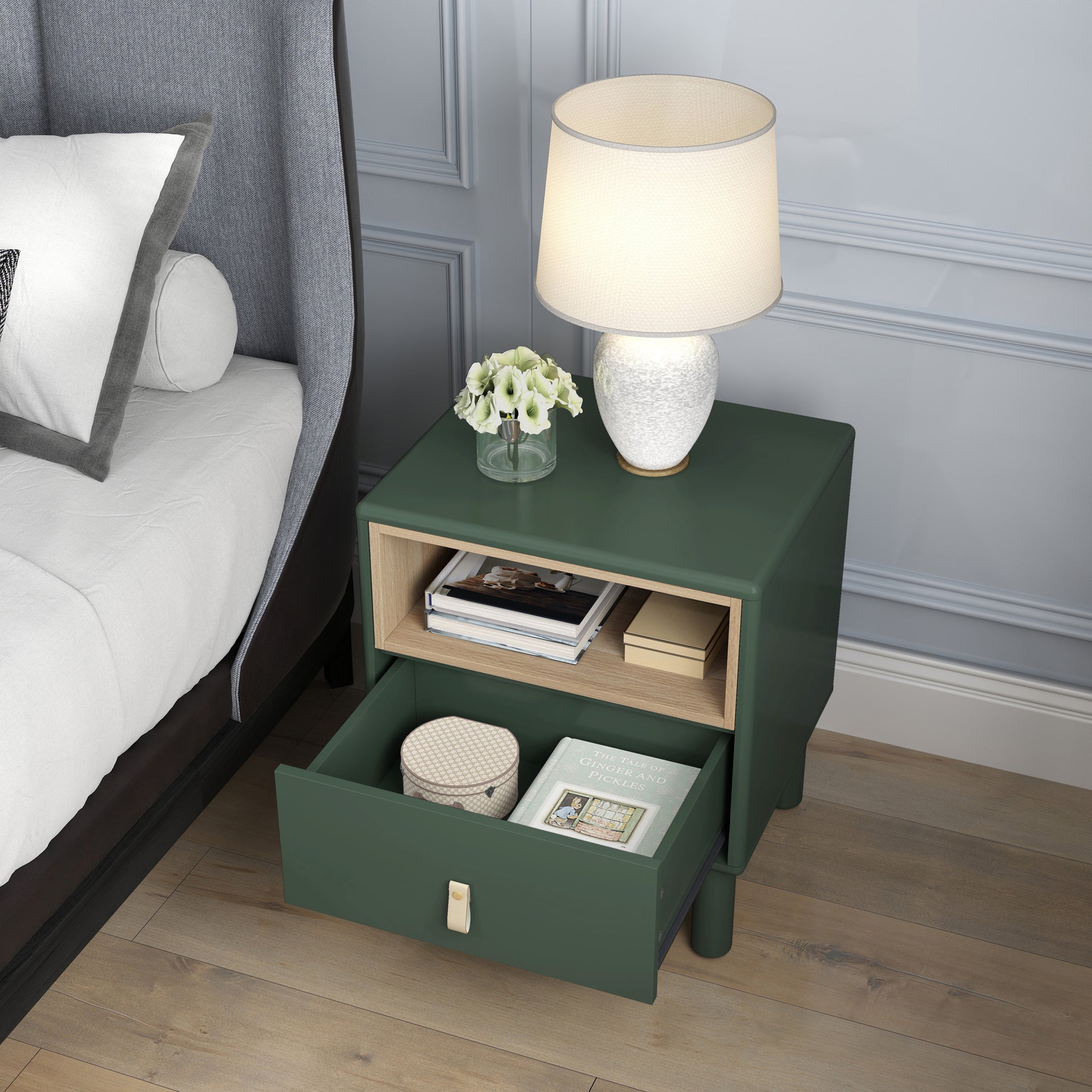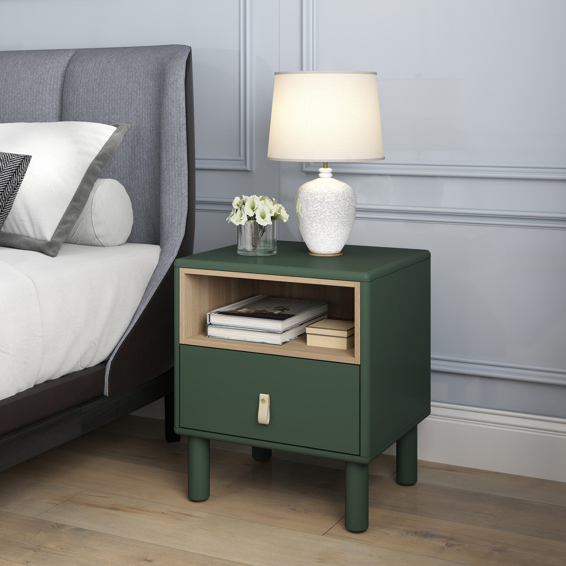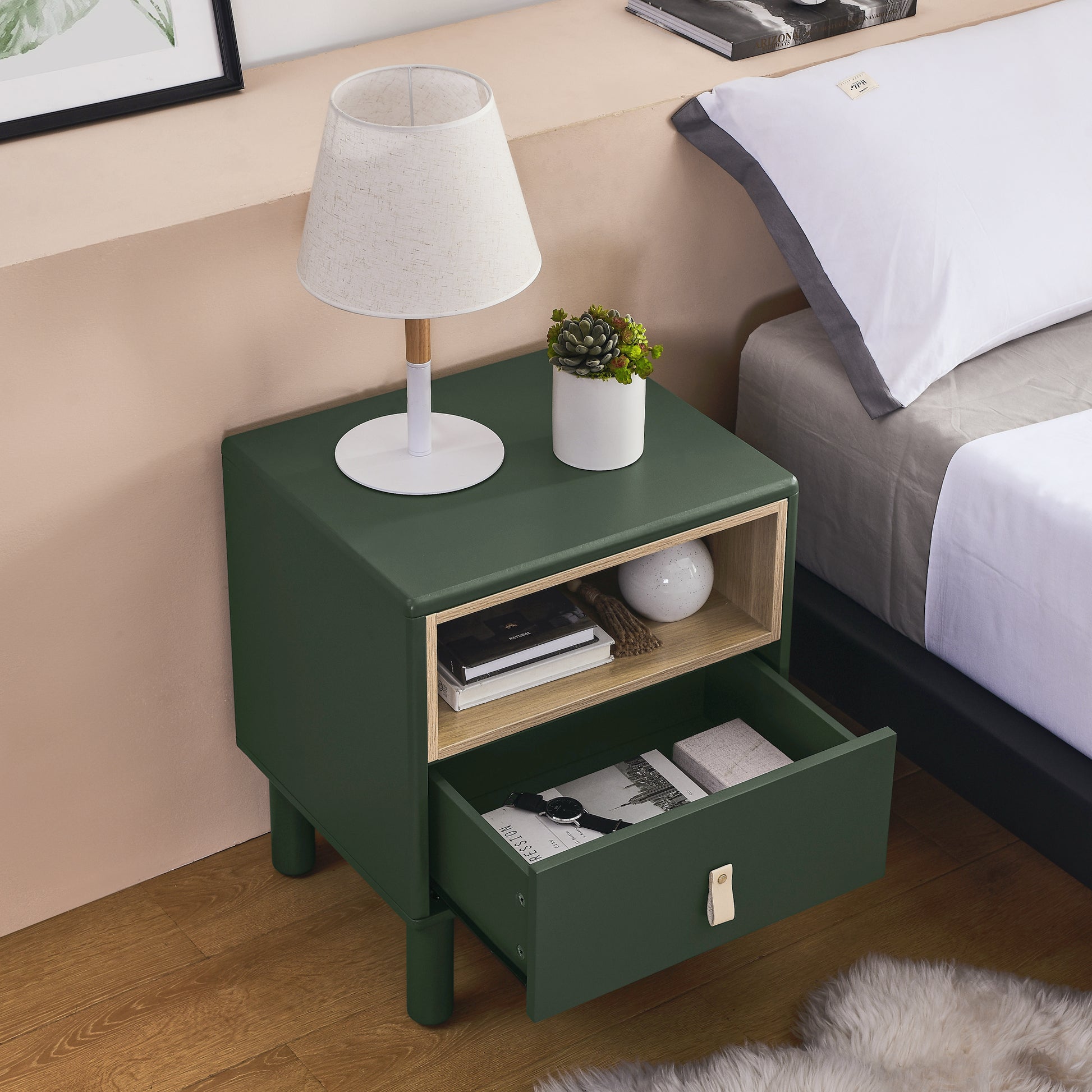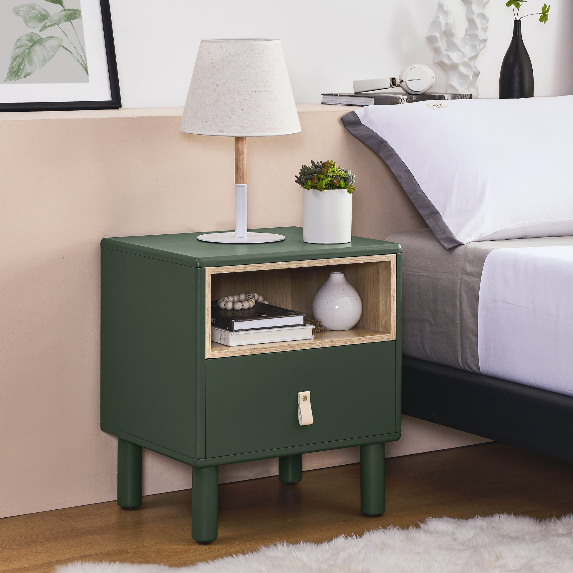 Single Drawer Bedside Table, Modern Style Bedside Table, Wooden Bedside Table, Bedside Table With Drawer, Side Table With Drawer, Compact Bedside Table, Nordic Style Bedside Table Green Solid Wood