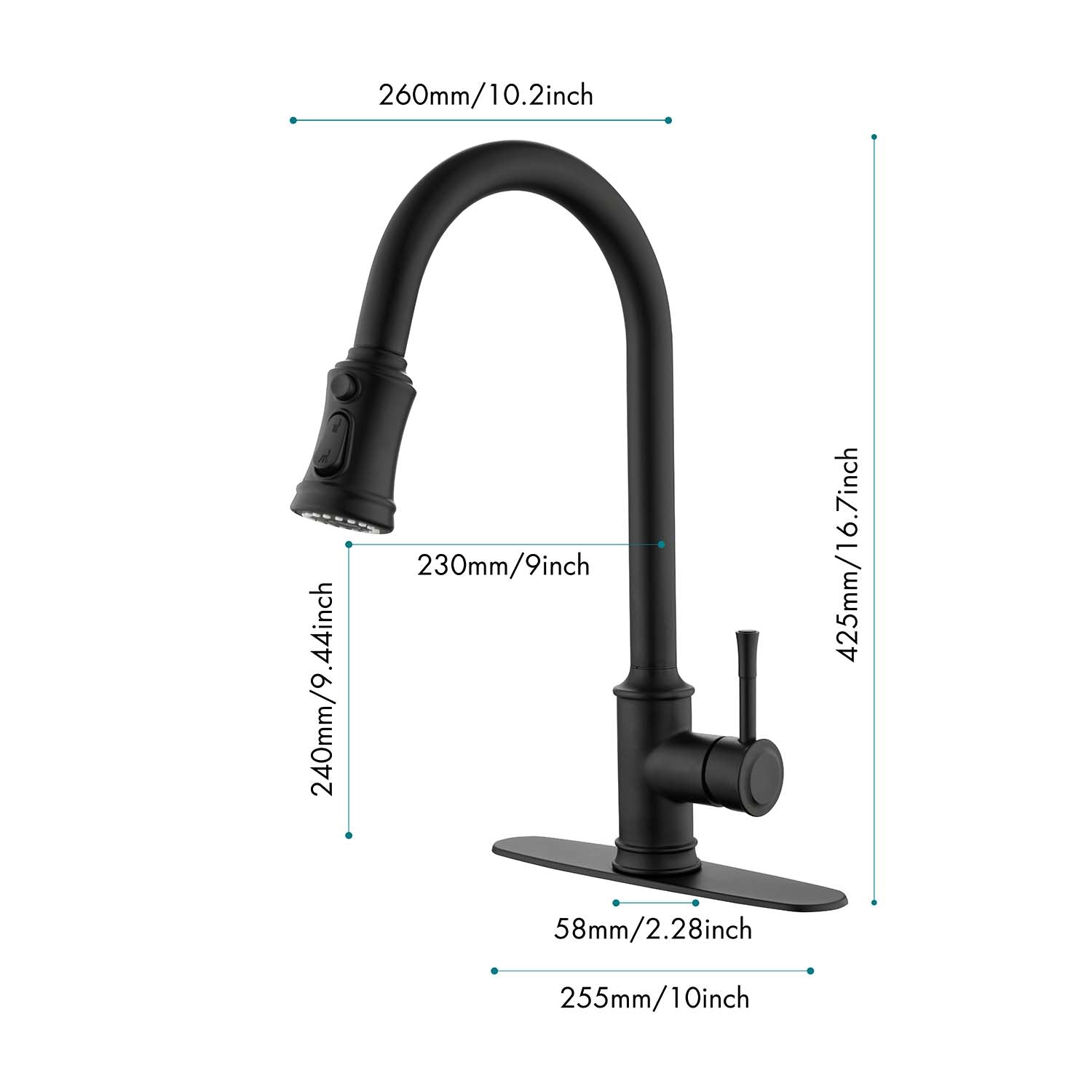 Single Handle High Arc Pull Out Kitchen Faucet,Single Level Stainless Steel Kitchen Sink Faucets With Pull Down Sprayer Matte Black Stainless Steel