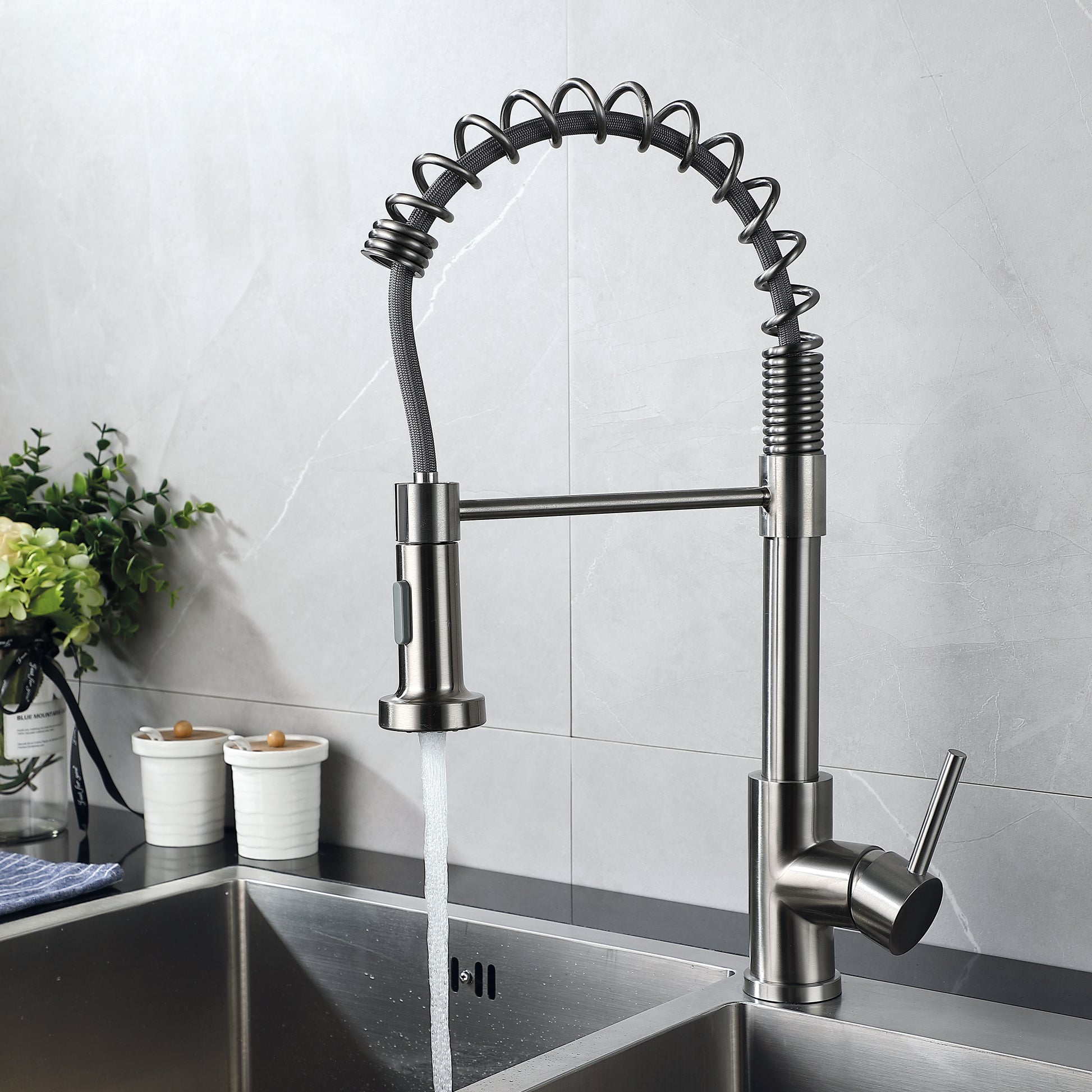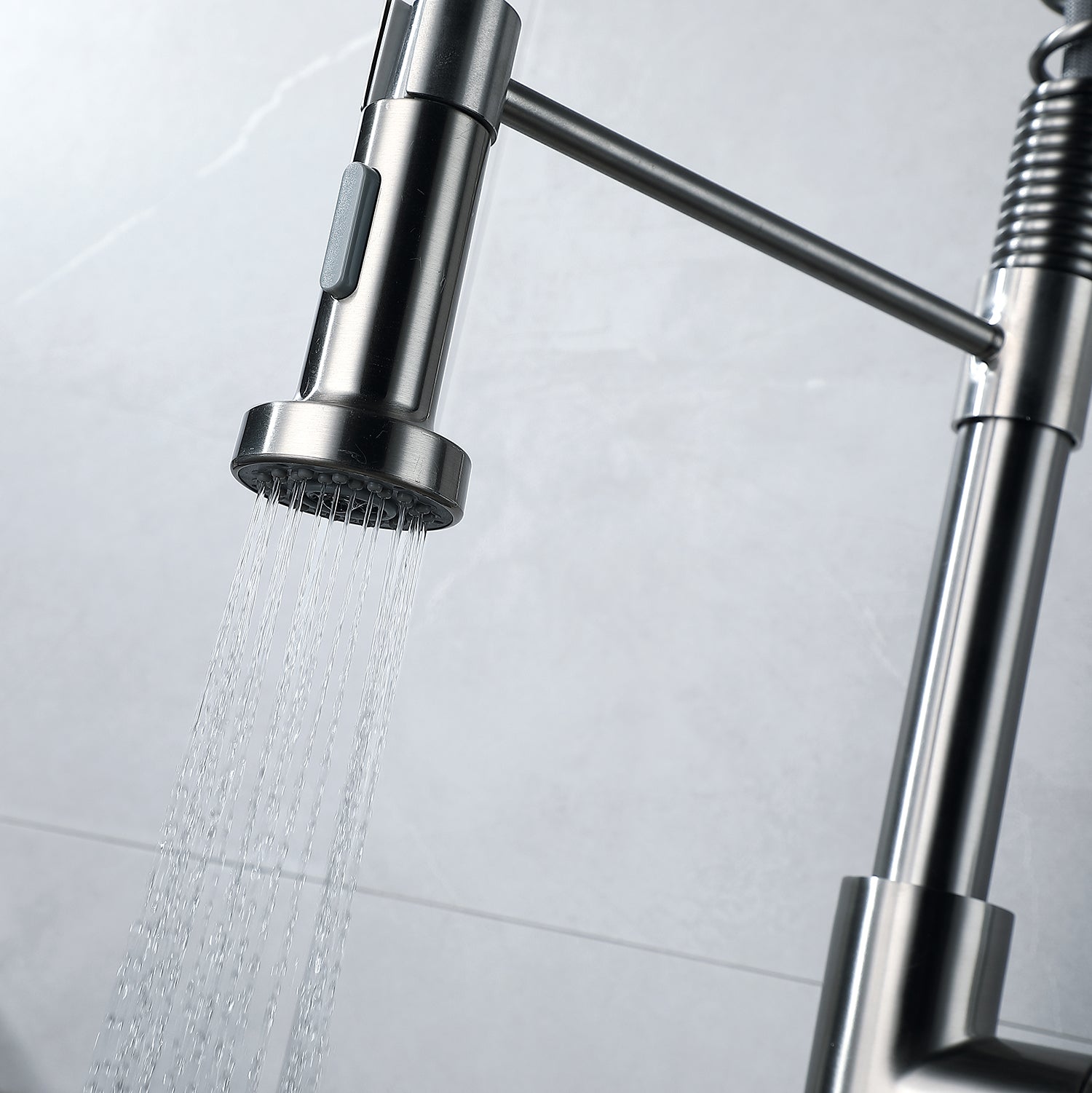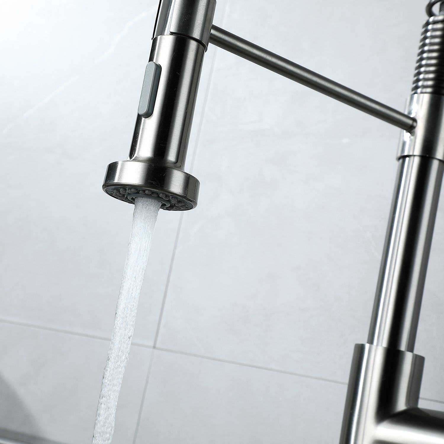 Single Handle Pull Down Sprayer Kitchen Sink Faucet Brushed Nickel Metal