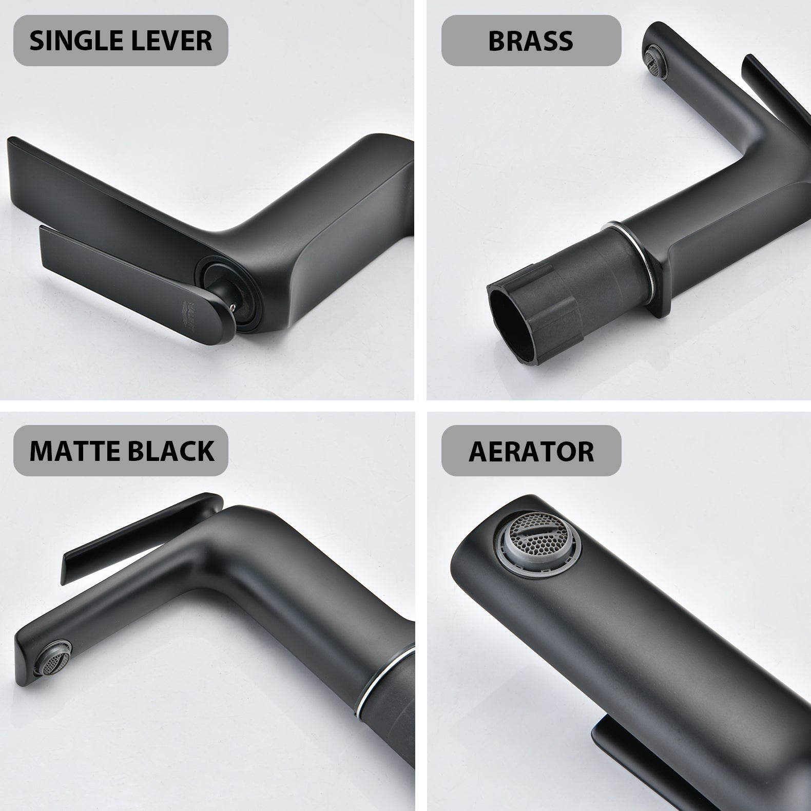 Single Hole Bathroom Faucet In Matte Black Matte Black Brass