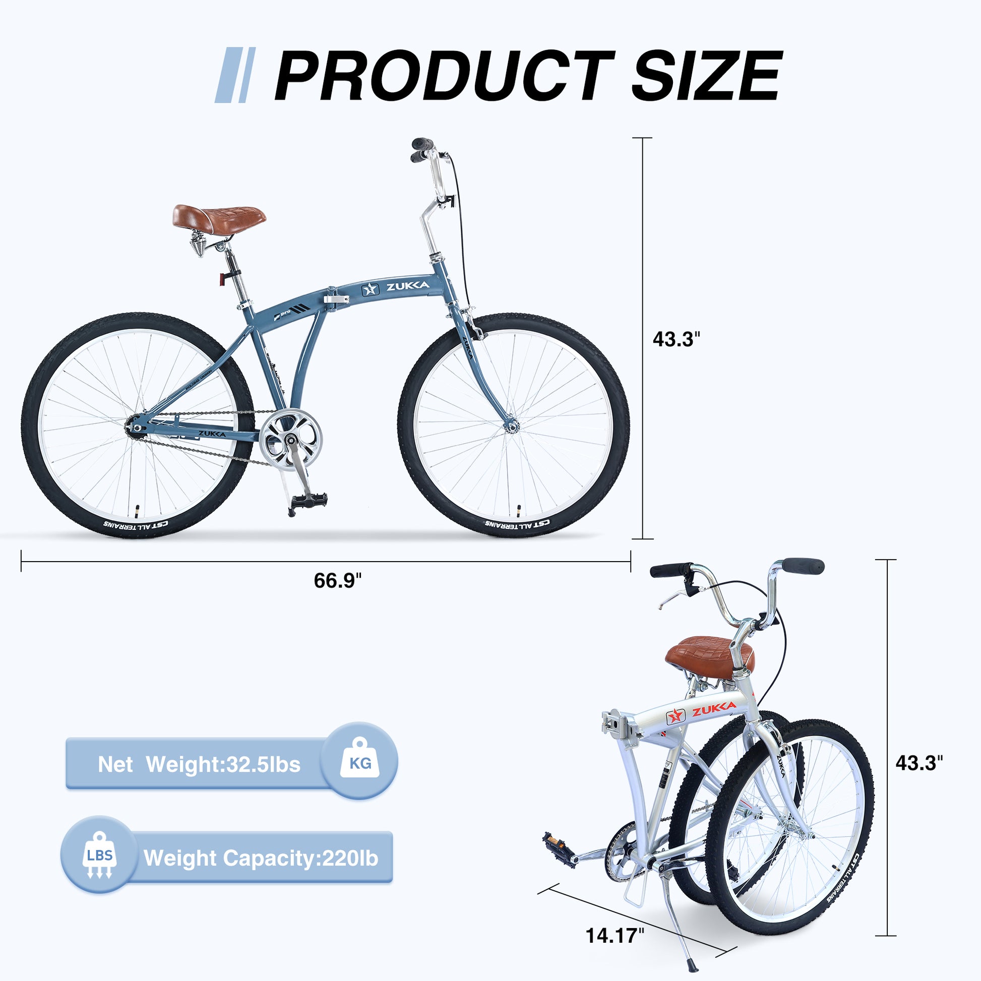 Single Speed Folding Bicycles, Multiple Colors 26"Inch Beach Cruiser Bike Cycling Blue Garden & Outdoor Steel