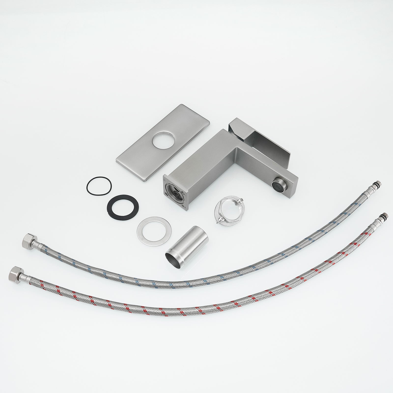 Sink Faucet With Deck Plate Waterfall Brushsed With Pop Up Drain And Supply Lines Bathroom Faucets For Sink 1 Hole One Handle Faucets Vanity Bath Mixer Tap Bathroom Joystick Geometric One Brushed Nickel Side Sprayer Deck Mounted Cartridge Valve Single